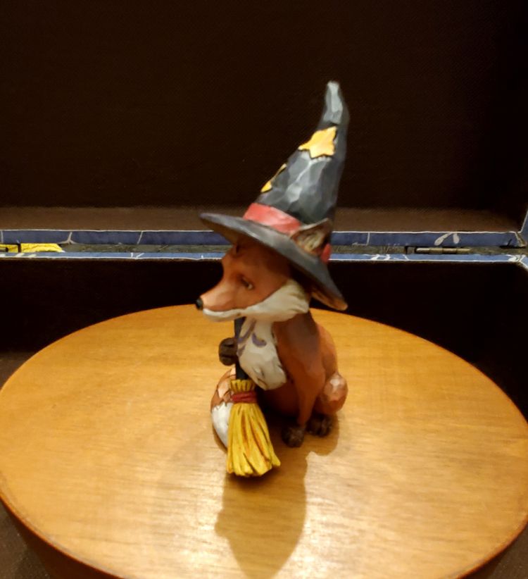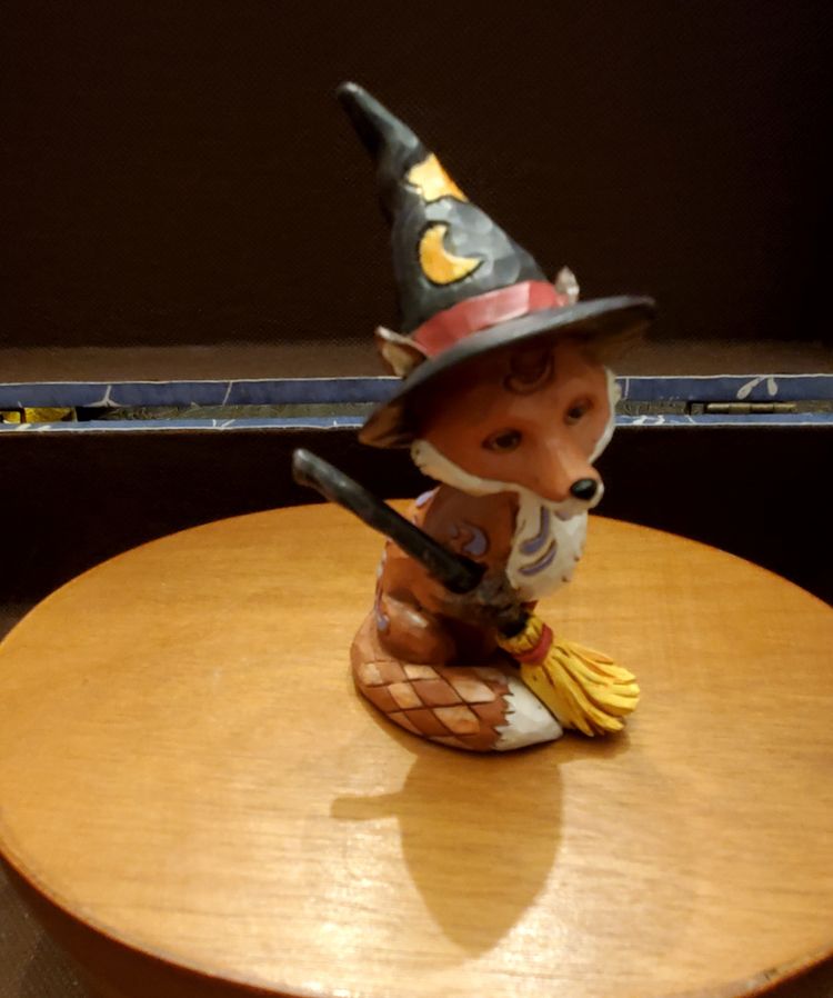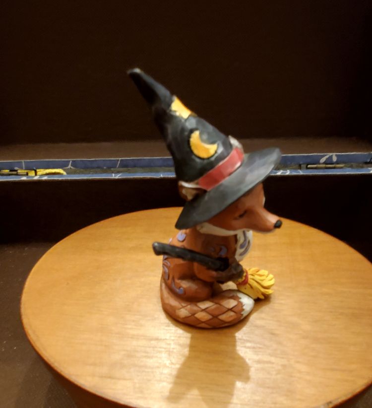 This is an adorable jim shore figurine featuring a fox in a witch hat with with a broom. Great condition. There is a date written on the bottom by a previous owner.