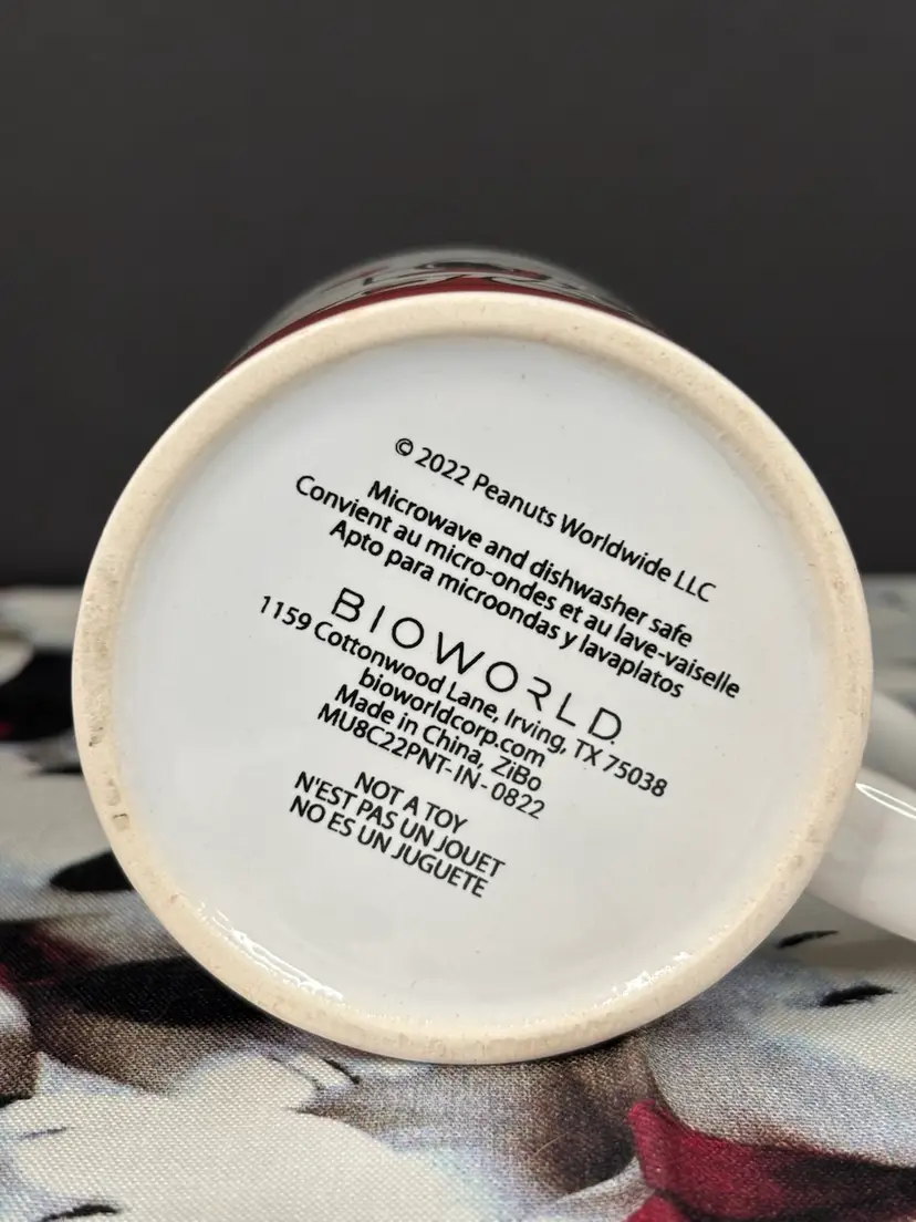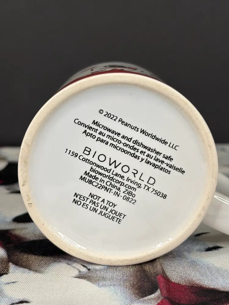 Snoopy gets all the Valentines! This is a super cute Valentine’s mug that includes scenes of Lucy and Peppermint Patty getting kissed by Snoopy. It was made by Bioworld in 2022. New, never used. In excellent condition with no chips or cracks. Add it to your collection today!