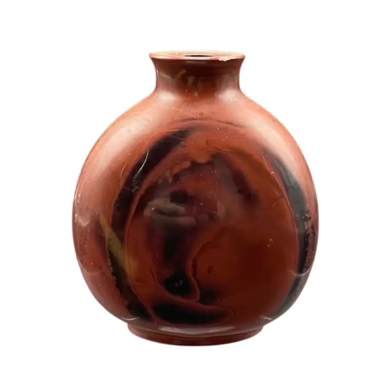 This is a vintage Carnelian Agate snuff bottle. Measures approximately 3" tall. There is a chip on the top rim. Please see pictures for details. Not a floater.