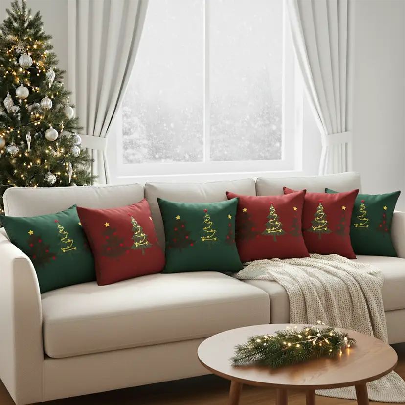 Complete 6-Piece Set: Ideal for decorating sofas, beds, or accent chairs during the Christmas season.