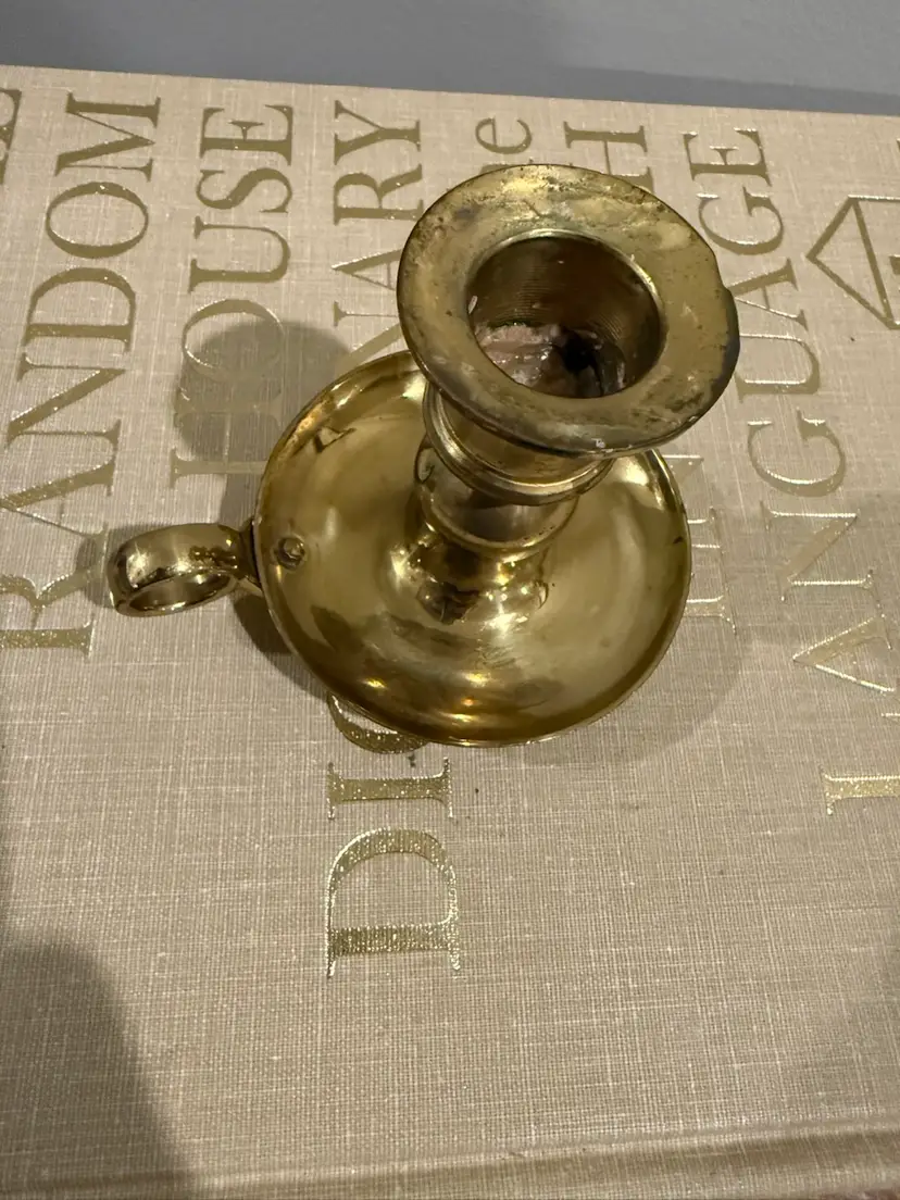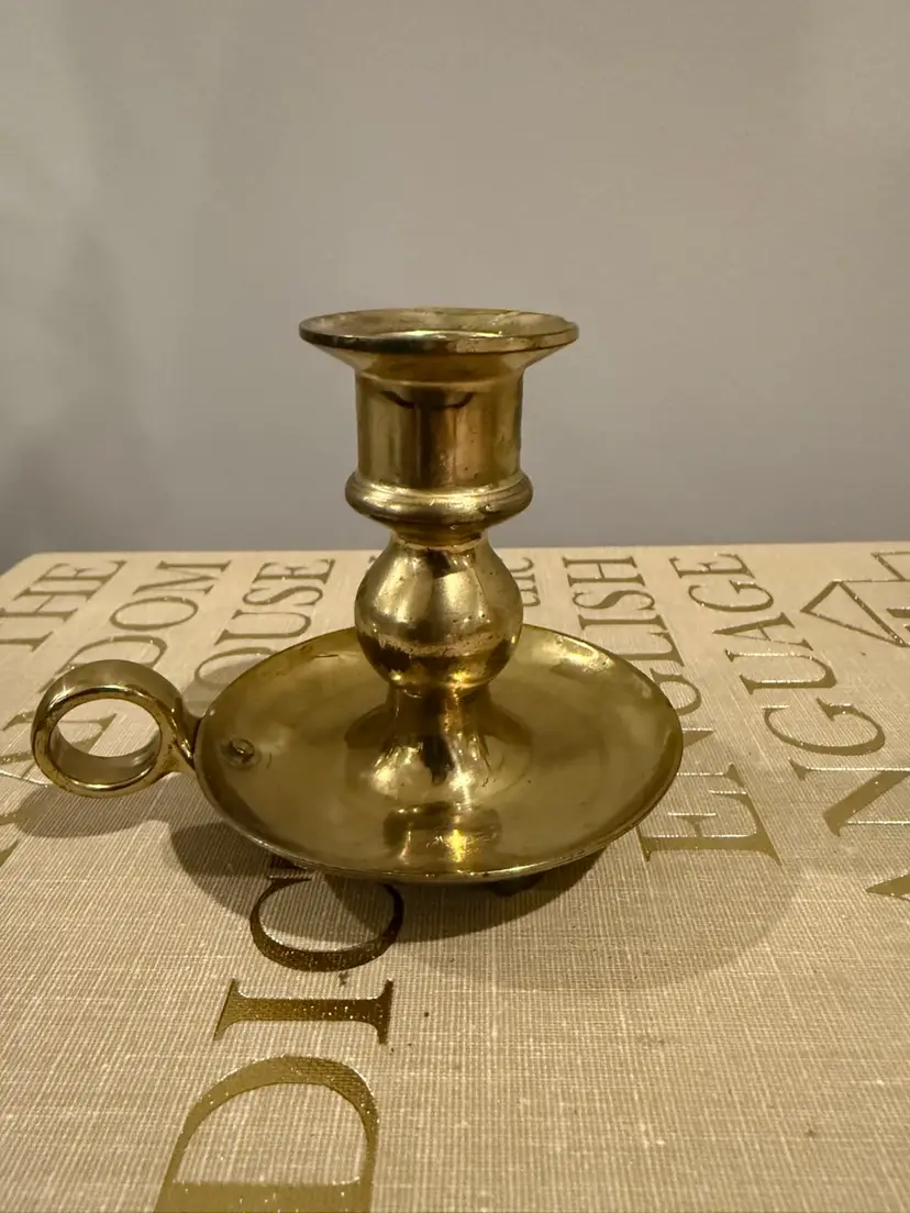 Solid Brass Chamberstick Candle Holder with Thumb Handle and Drip Saucer, Made in Portugal