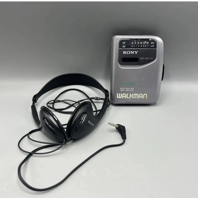 Radio works. When you push play, rewind, or fast forward you can see the post try to turn. It probably just needs a tuneup to get going again. The headphones don’t have the foam over the ear pieces but the sound quality is good. Has wear on front as seen in accompanying photos. If you have any questions or would like more pictures please send me a message.