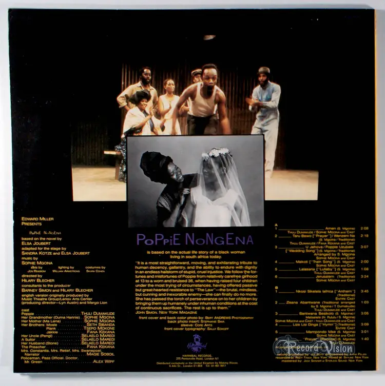 Poppie Nongena, by Sophie MgCina, is a 1983 studio cast recording of the musical The Long Journey of Poppie Nongena, adapted from Elsa Joubert's 1978 novel Die Swerfjare van Poppie Nongena, which depicts a Xhosa woman's struggles with forced removals, migrant labor, and personal loss under apartheid. MgCina, a trailblazing South African artist, composed the music and lyrics, fusing Xhosa tribal sounds, traditional melodies, and hymns in Xhosa and English to convey resilience and protest. Featuring performers like Thuli Dumakude, Fana Kekana, and Seth Sibanda, the album reflects the 1980 Market Theatre premiere in Johannesburg, with later international acclaim in New York (where MgCina won an Obie Award) and at the 1983 Edinburgh Festival. As a significant anti-apartheid work, it amplifies the novel's real-life-inspired narrative of Black South African oppression, raising global awareness. Notable tracks like U Jehova: Poppie Uzubale (the wedding song) and Taru bawo/Wenzeni na stand out for their emotional and rhythmic power, though no conventional hit singles emerged.