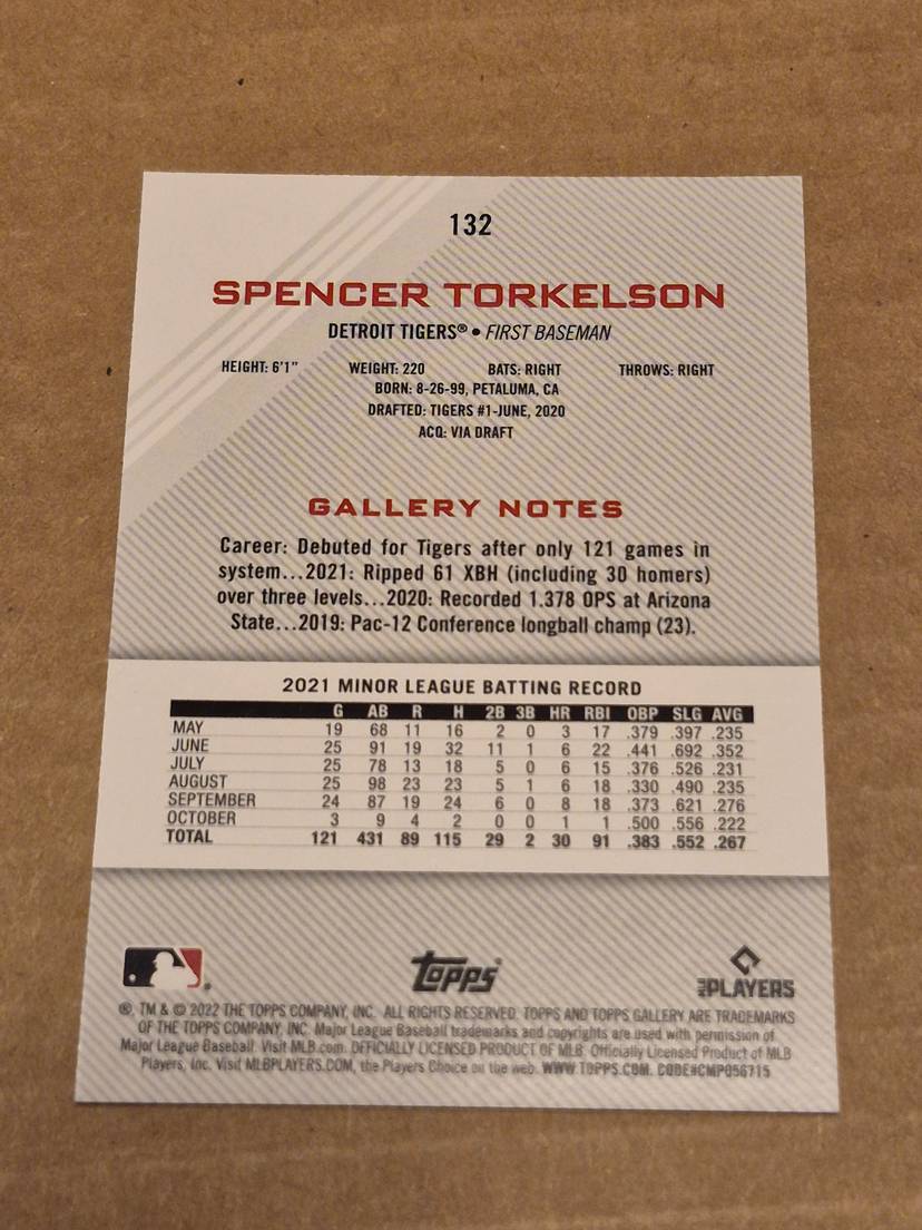 An awesome SSP RC of Spencer Torkelson! Card is in NM-MT condition.