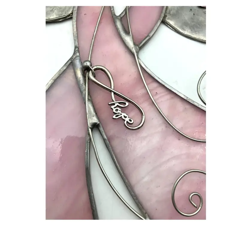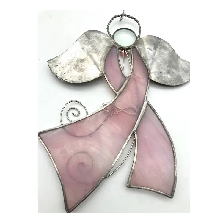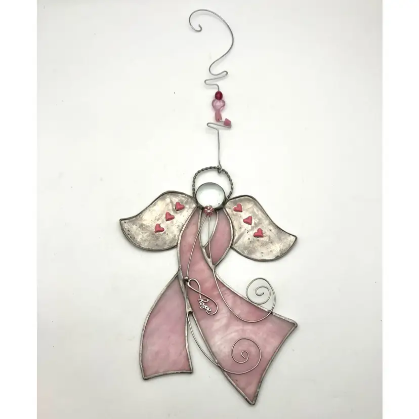 Angel (without hanging wire) measures 8.75” long x 7” wide and 1/8” deep. With wire, length is 17”.