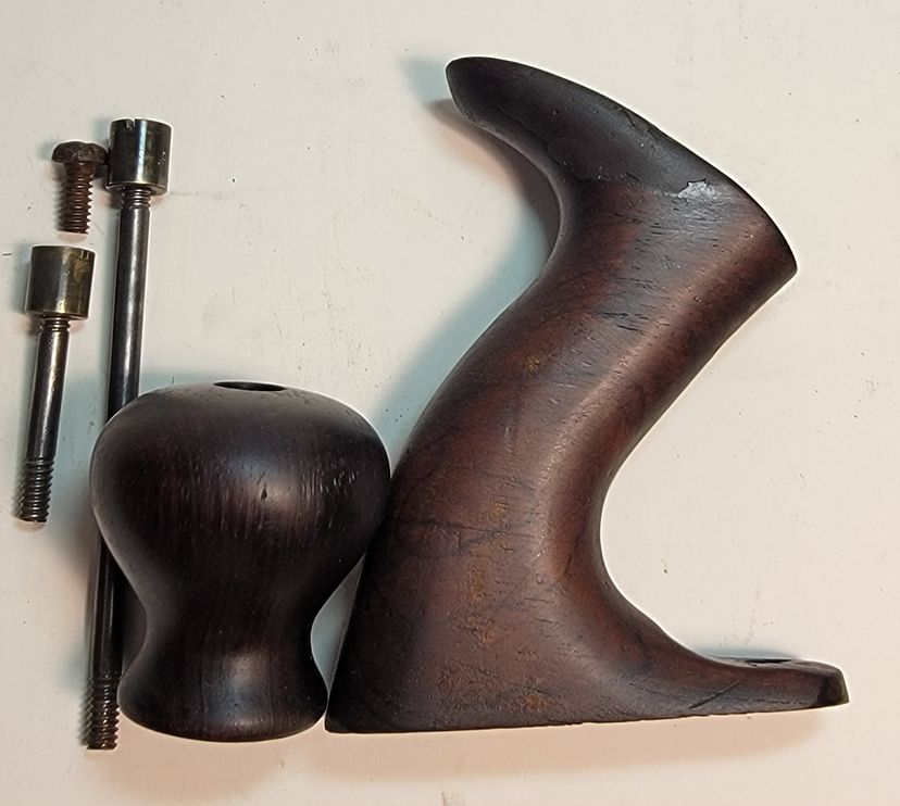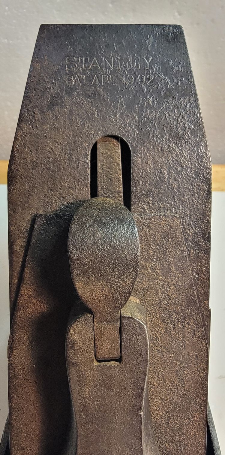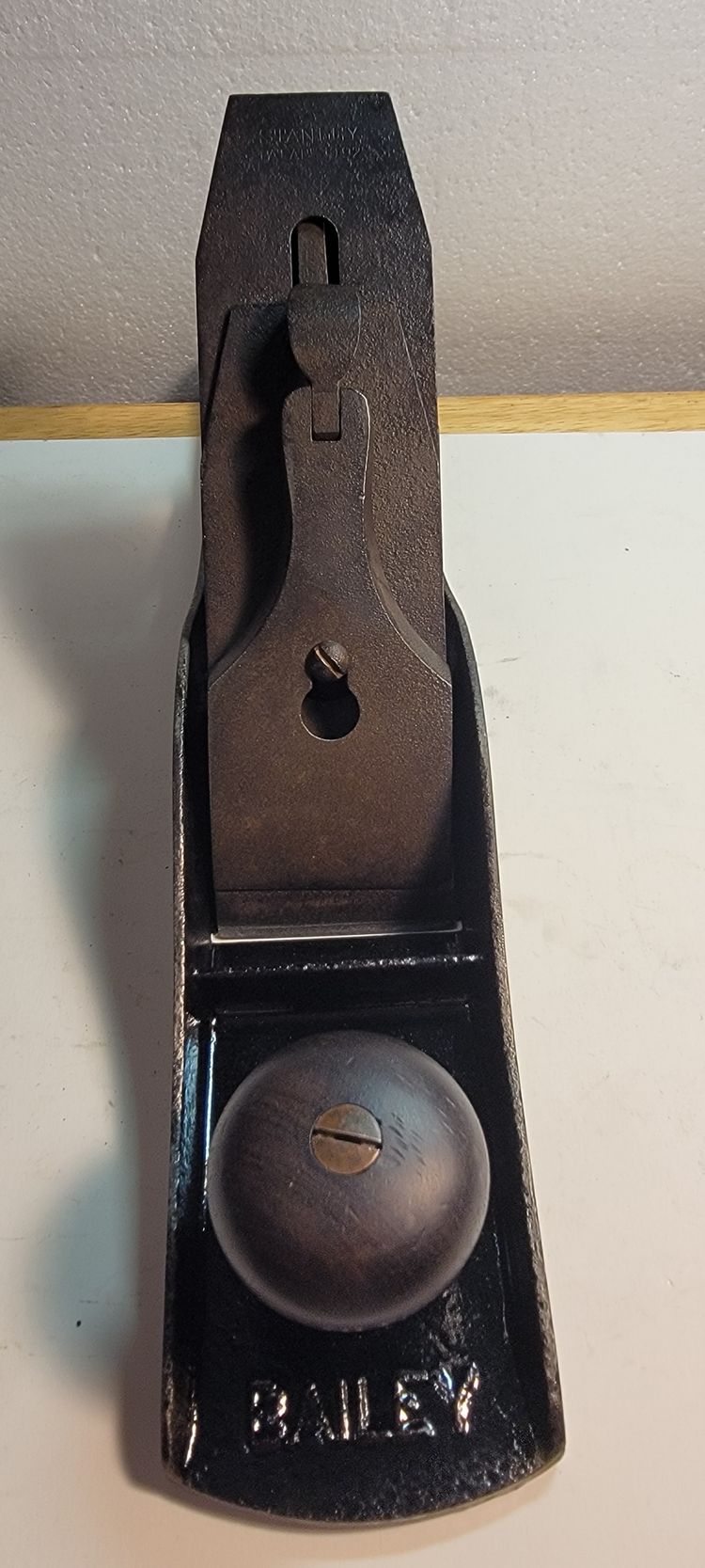 Up for sale is a nice Stanley #5 1/2 Hand plane. It is a type 9. I say a type 9 because it doesn't have a frog adj. feature on it. It does have the higher arch on the frog receiver. I have seen many 5 1/2, 6's, 7's and 8's with the same features. Some have called this combination a 9a, but most people use the frog adj. feature to determine the type. This plane is in great shape. The japanning was very spotty on it so I stripped it off and re-Japanned it using Stanley's original recipe and baking it 5 times and I think it looks great, judge for yourself. I have flattened the sole and sharpened the blade going through the grits up to 8000. The tote and knob are in great shape and have that beautiful dark rosewood . The blade iron has the Q logo and has very good length. The 5 1/2 is rare in it and the 605 1/2 are the only Stanley planes that have a 2 1/4" wide blade. The sole is in great shape and has a clean mouth. Message me with any questions or if you want more pictures. The tote has a very small chip on the horn that has been repaired.