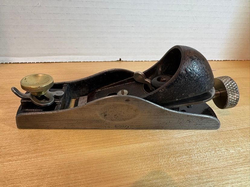 Stanley 60 1/2 low angle block plane with the adjustable mouth. The low angle and adjustable mouth give great flexibility - narrow mouth for challenging grain, wider mouth if you are doing heavier removal. I flattened the bottom and sharpened the iron to fully test it. Works great. Tuned and ready to go.