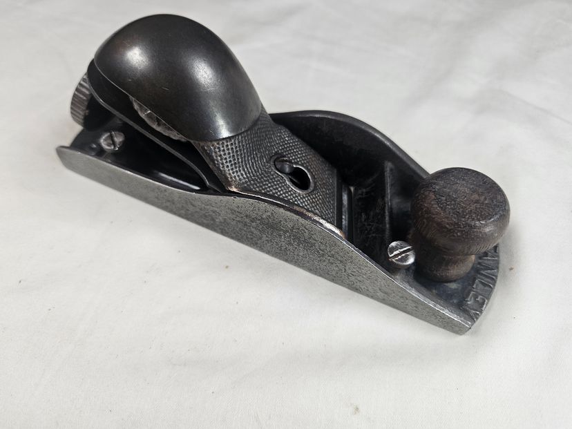 A true classic from Stanley’s golden age of toolmaking, this Stanley No. 140 skew rabbet block plane is a highly sought-after piece by collectors and fine woodworkers alike. With its distinctive skewed iron and removable side plate, the No. 140 excels at trimming tenons, working into corners, and cutting rabbets with precision.