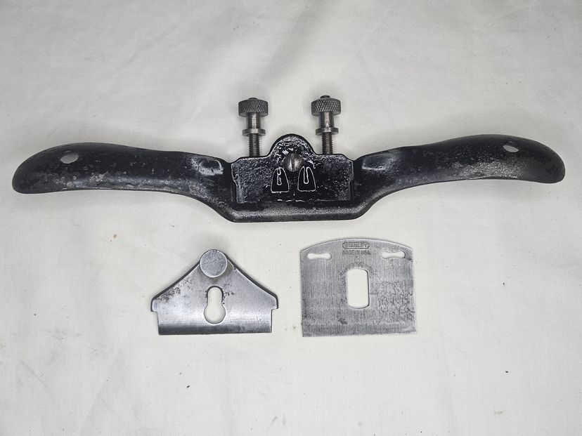 Up for sale is a vintage Stanley No. 151 adjustable spokeshave. This model features dual adjustment screws, allowing fine-tuned control of the blade depth and alignment – ideal for shaping curves, smoothing edges, and general woodworking tasks.