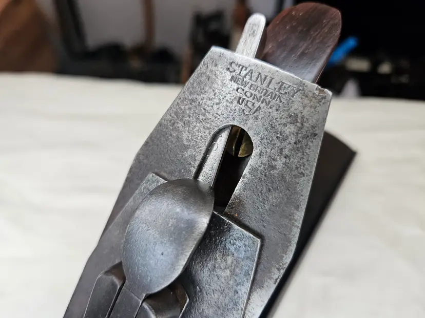 Awesome rosewood tote and low front knob on this plane. It has all the features of a type 7 produced 1893-1899 with the exception of the V-shaped logo on the iron. Will make a solid user from a quality era of Stanley plane production.