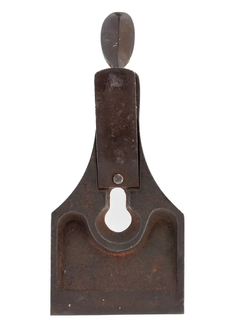 A Good Plus replacement lever cap for Stanley's No. 8 and No. 8C jointer planes. It is an earlier style used from 1872-1918 (types 3-11). It has some patina and minor wear, and it works perfectly.