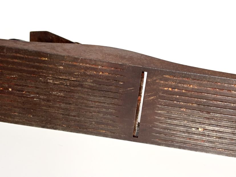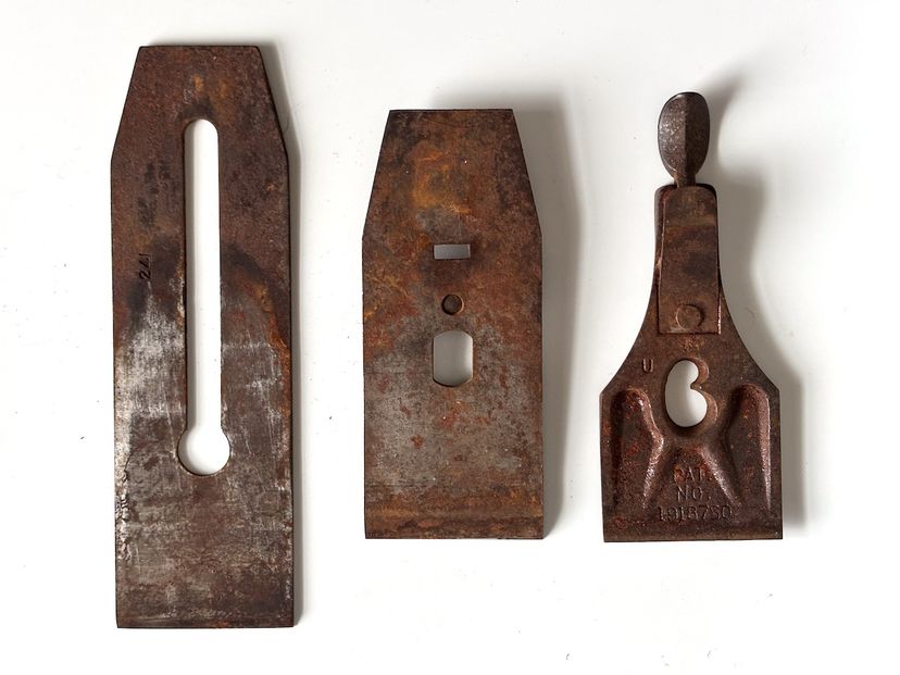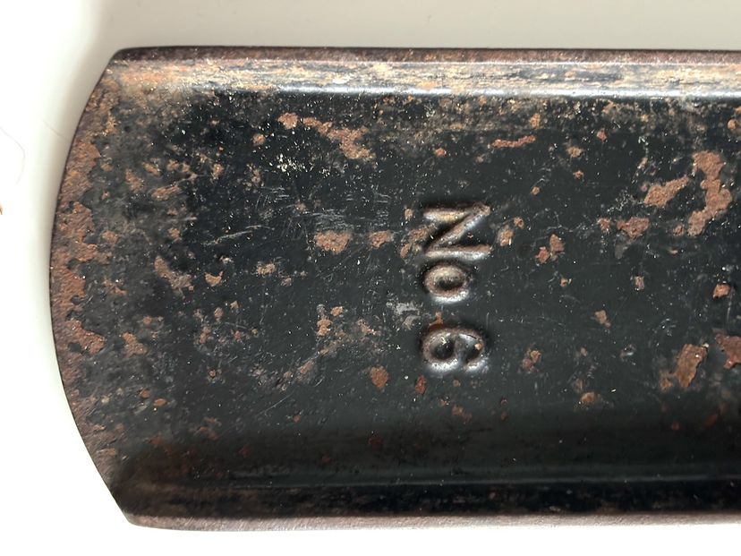 Overall good condition for having lived in a shed for quite a while; no cracks or chips but with a fair amount of surface rust. All fasteners and adjusters are free except for the screw holding the frog adjustment tab. Currently has a replacement tote, and includes the original, which is broken. Iron does have some pitting where it meets the chip breaker and could stand to be replaced.