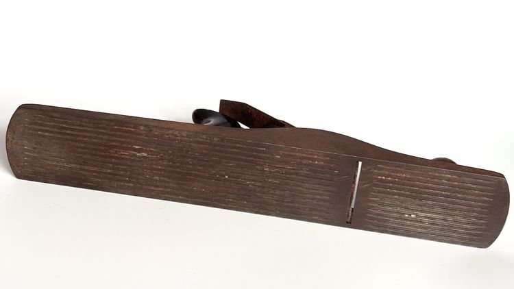 Number 6 fore plane, 18" long, with corrugated sole. This is probably a type 14 or 15 from the 1930's, with the tall knob and large depth adjustment nut. Notched rectangle logo on the iron (which may or may not be original to the plane.)