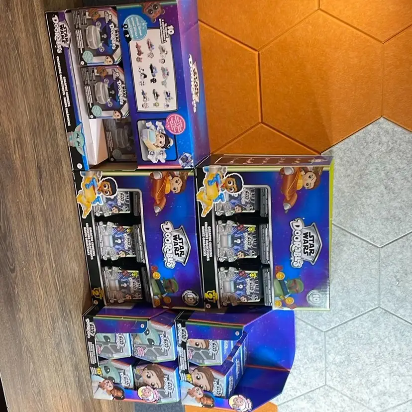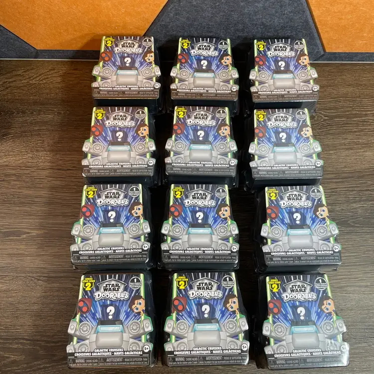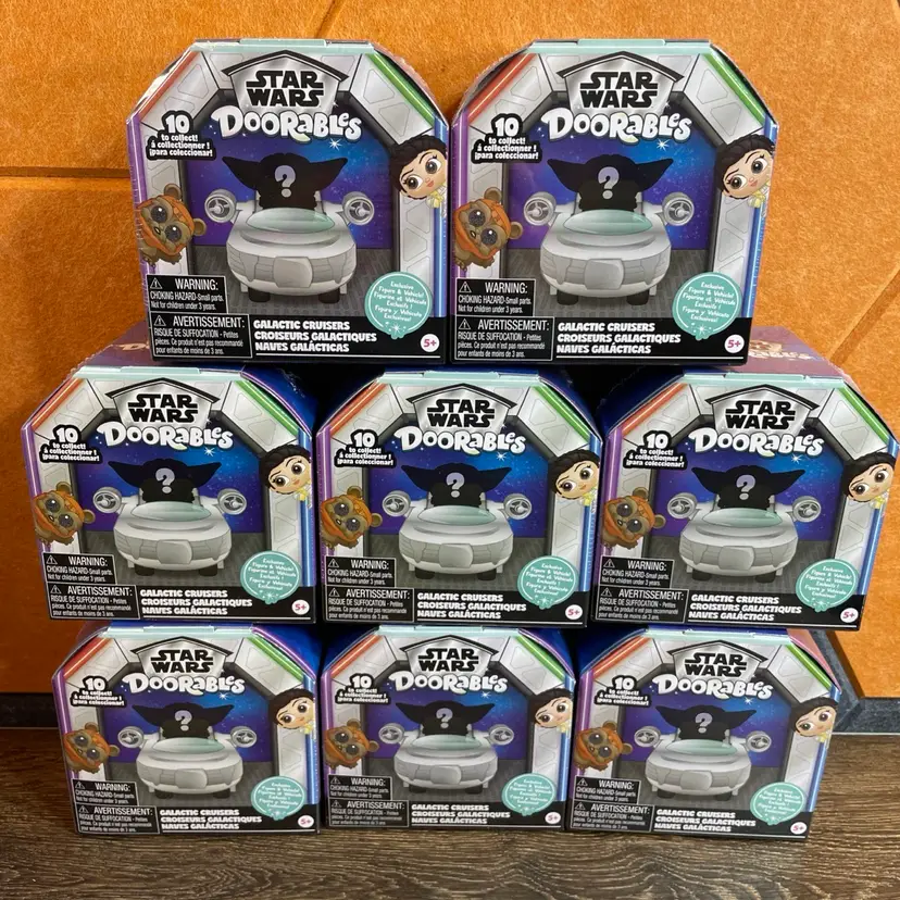 Star Wars Doorables Puffsbles Plush 18 with 2 displays. Star Wars Doorables Galactic Cruisers 8 with 1 display. Star Wars Doorables Galactic Cruisers Series 2 24 with 2 displays. The displays have a little bit of wear and two of them have a tear in the box, but they are all functional. All of the toys are new factory sealed. Feel free to make me an offer!