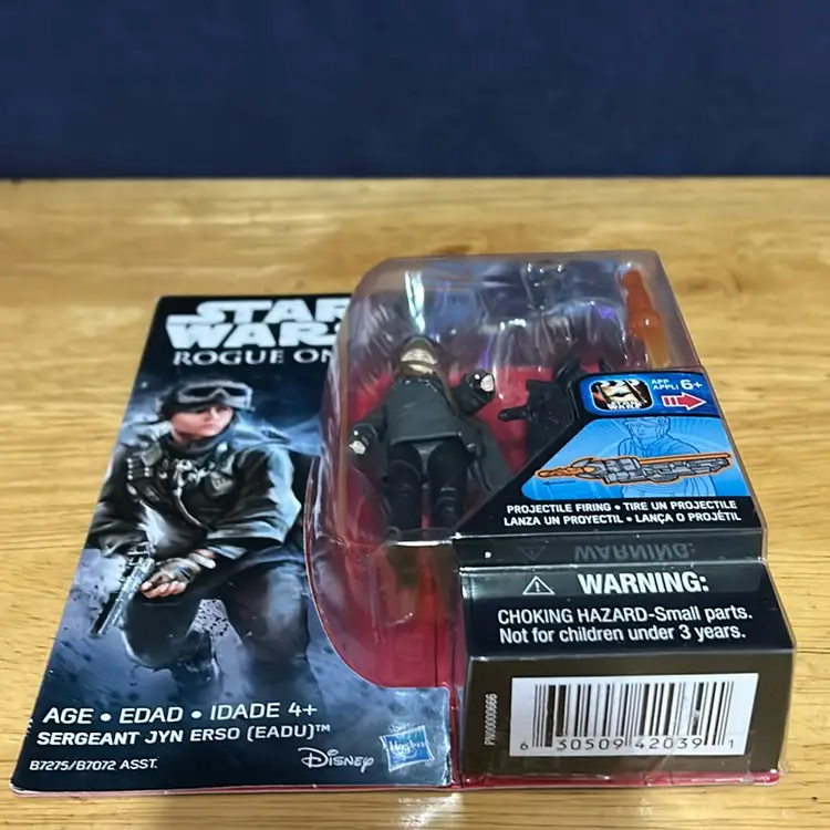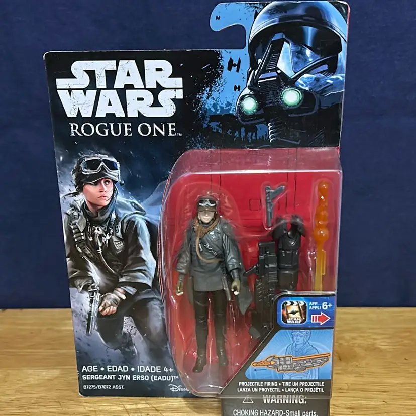 This 2016 Star Wars Rogue One action figure features Sergeant Jyn Erso, a human character from the Star Wars franchise. The figure is 3.75 inches in size and made of plastic, with a blaster accessory included. It is an original, licensed reproduction from Hasbro and comes in its original, unopened packaging. The figure is part of the Star Wars series and is perfect for all occasions, especially for fans of the Rogue One: A Star Wars Story movie. It is suitable for children aged 5-7 years and is a great addition to any Star Wars collection. The animation studio is Disney and the figure is not customized or signed. Get this unique piece of Star Wars memorabilia today!