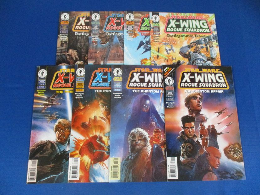 Star Wars X-Wing Rogue Squadron Battleground Tatooinc The Phantom Affair Dark Horse Comics lot of eight Like new condition glossy and bright cover with white pages. Very minor indentions on cover Shipped in a Gemini mailer bagged and boarded.. If you need more pictures or question please contact me. Same day shipping. Thanks for looking!