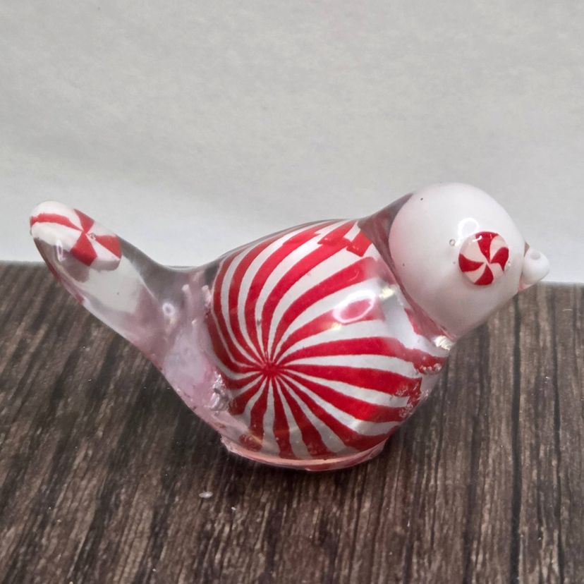 These tiny little birds are handmade from UV resin and bits of baubles and bling from my craft jewelry pile or whatever else I can throw in. No two are alike.