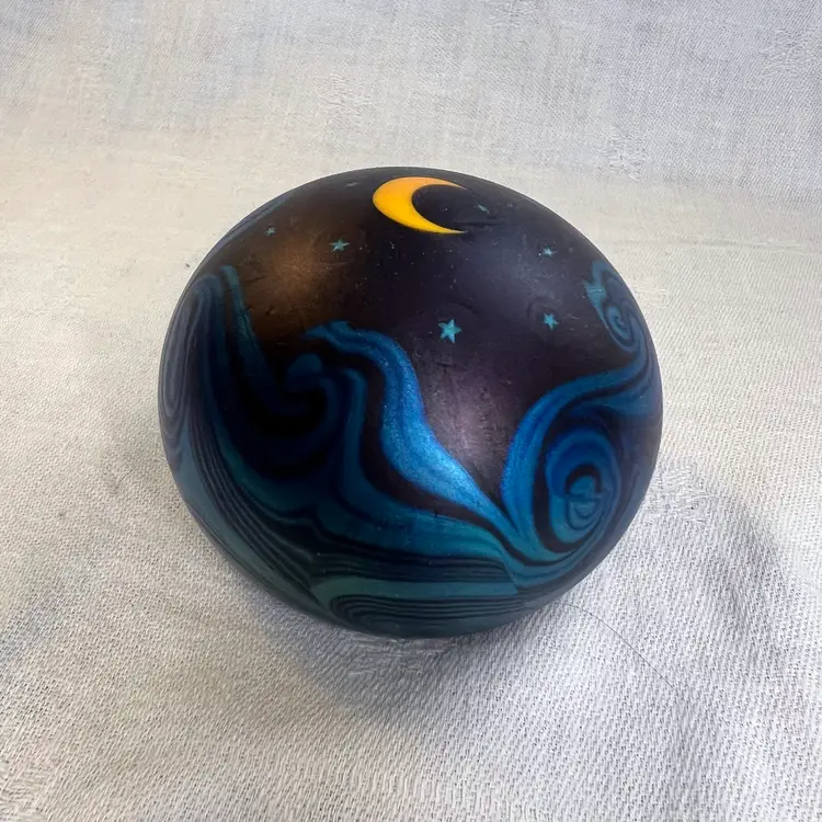 Vintage Lundberg Studio Paperweight. Starry Night design. Signed, dated 1976 and numbered 1545.