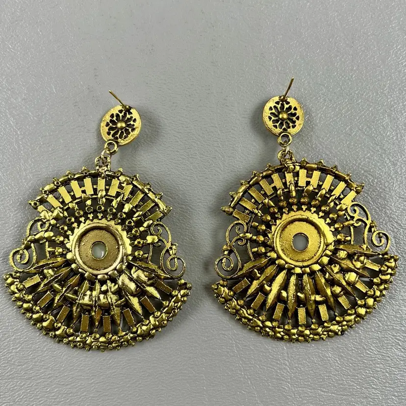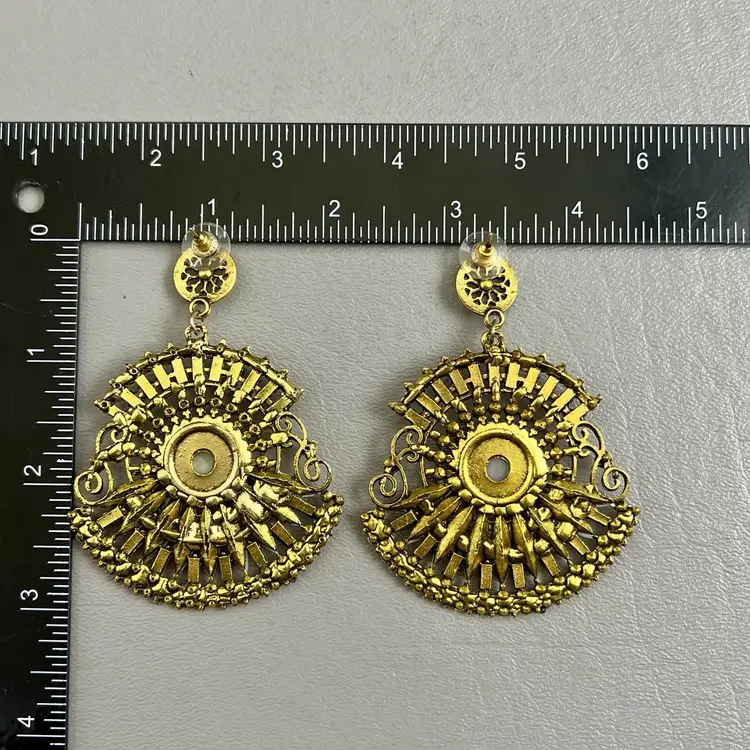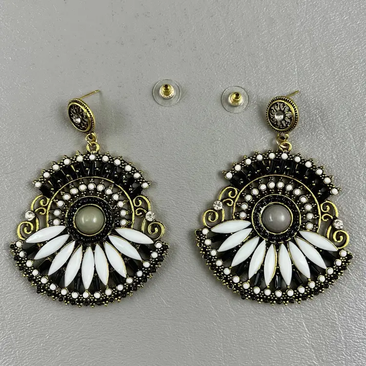 Statement Bohemian Style Drop Dangle Earrings Western Gold Tone White Black 3"
