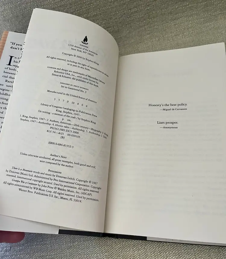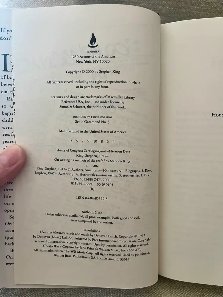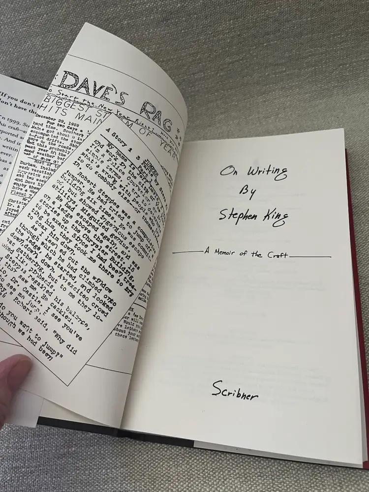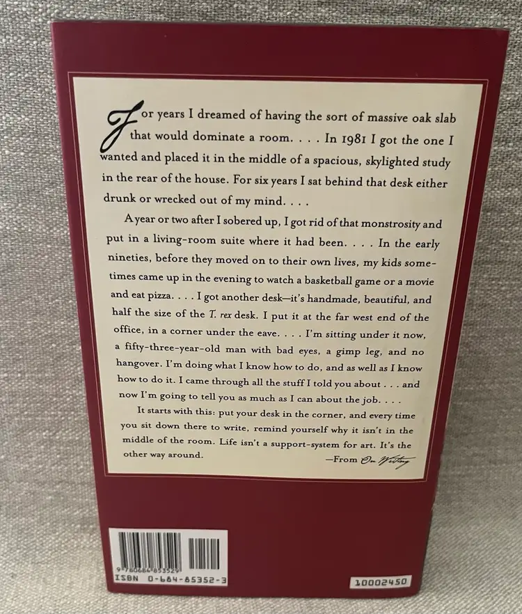 The product is a first printing of Stephen King's "On Writing: a Memoir of the Craft" released in 2000 by Scribner. This hardcover book falls under the subject areas of biography & autobiography, literary criticism, and language arts & disciplines. With 288 pages, the book explores the authorship of Stephen King in the genre of science fiction & fantasy, as well as offering insights into the craft of writing. It is a vintage item with a dust jacket, making it a valuable addition for those interested in literary criticism and creative writing.