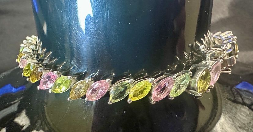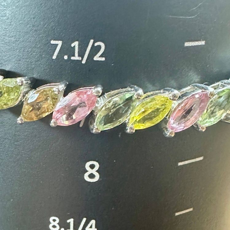 Sterling Silver 925 DJoy Multi Colored Stone Tennis Bracelet 7 3/4 Inches Tested