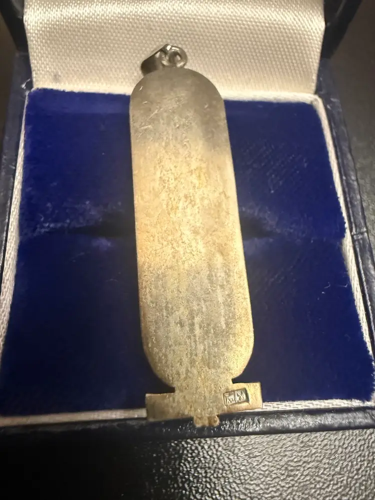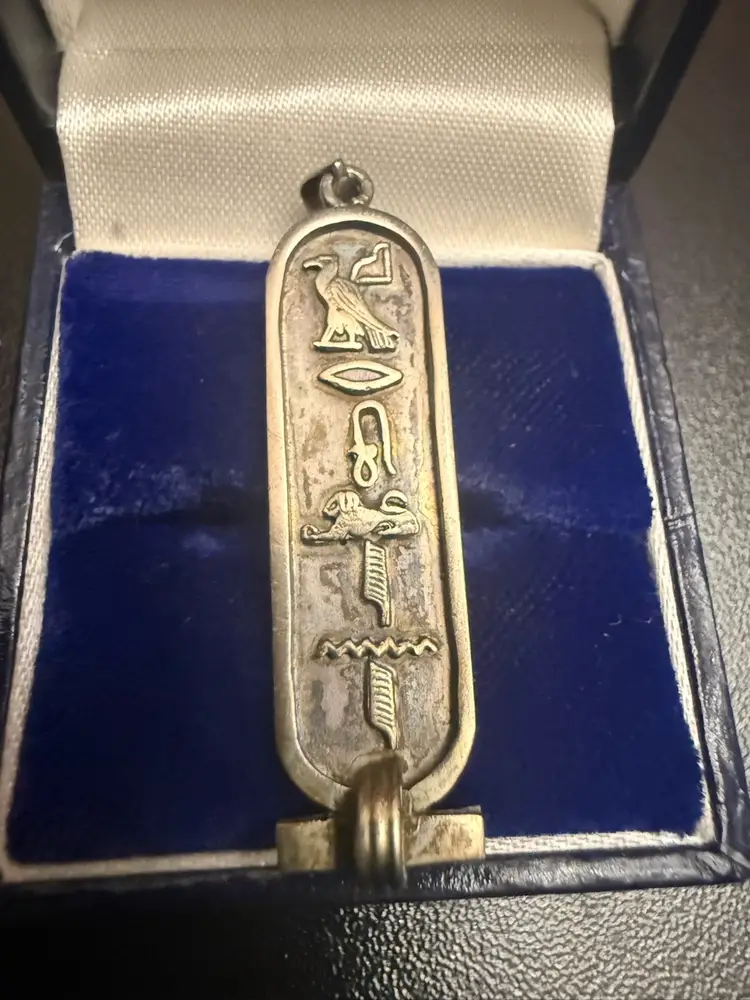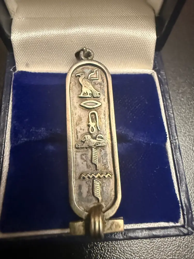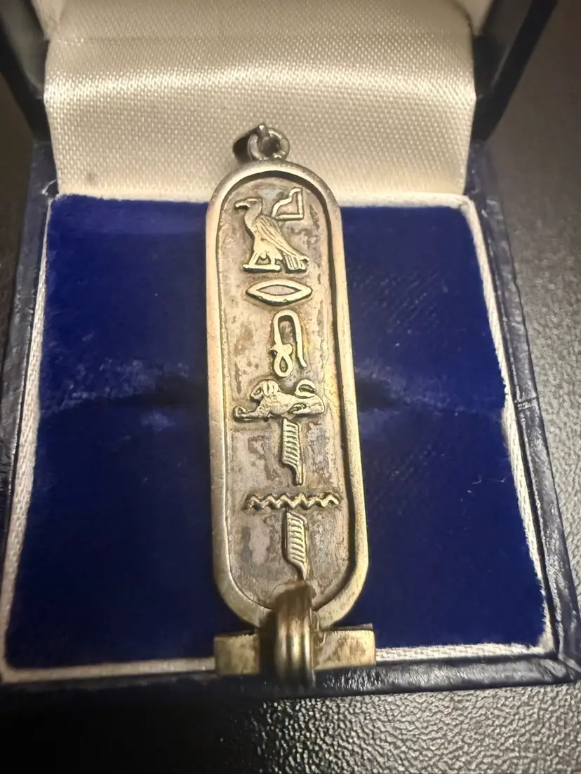 This specific pendant features the Eye of Horus (protection/healing), the ankh (life), and a symbol often associated with "health and happiness".