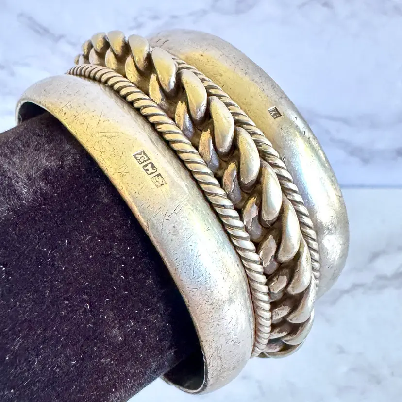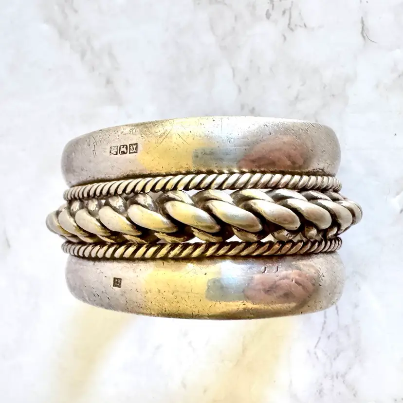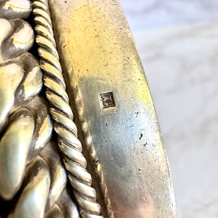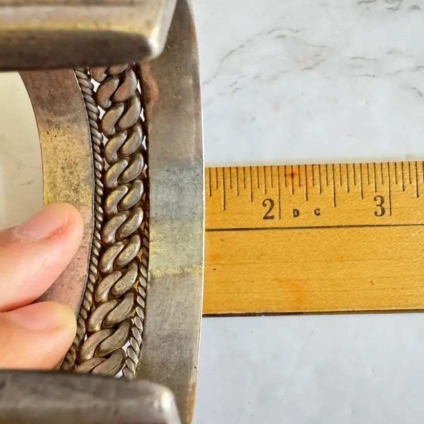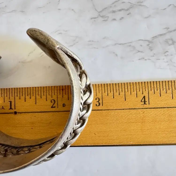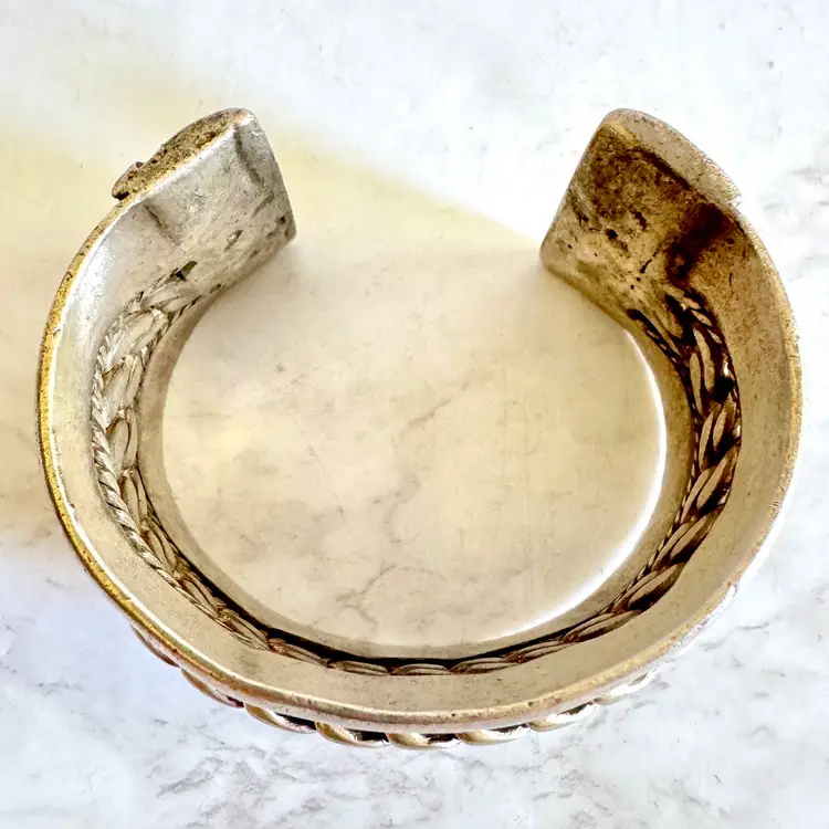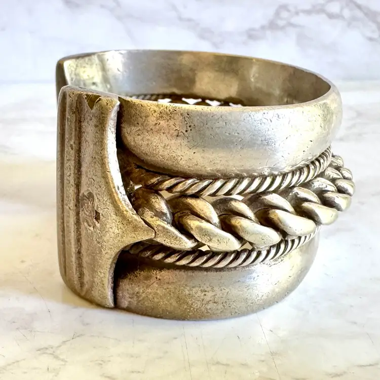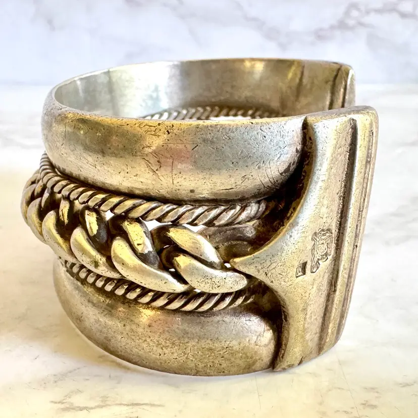 2.75” wide, 178g, signs of wear indicative of age. Tested as sterling silver.
