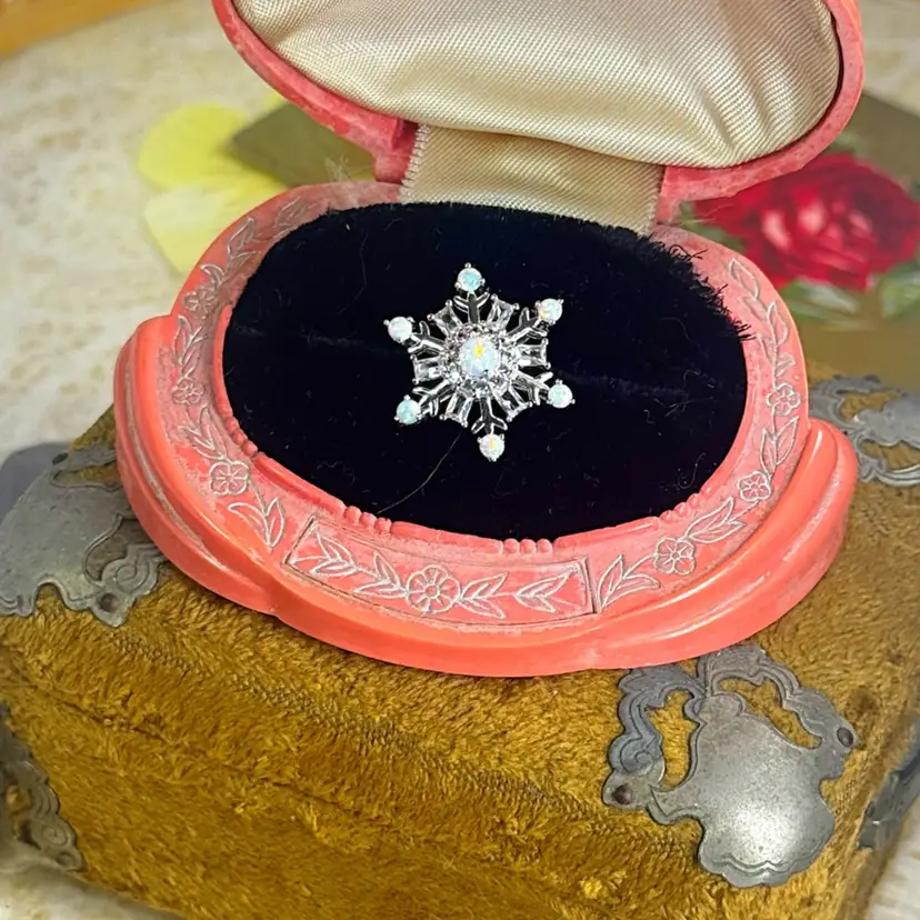 Sterling Silver Opal Snowflake Pendant .75”