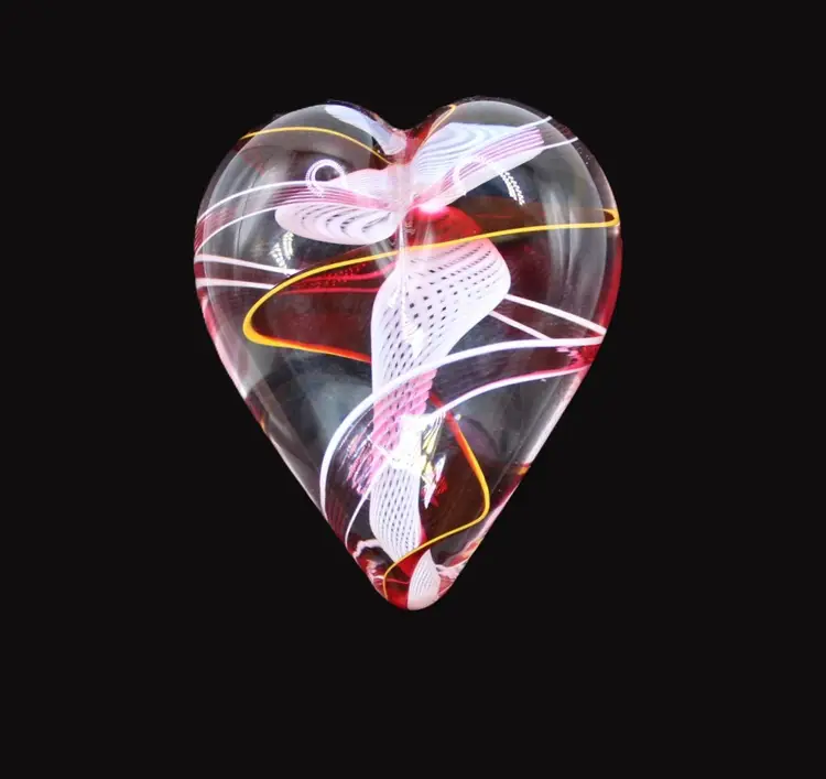 Steven Maslach Hand Blown Art Glass Valentine's Day Heart Paperweight
