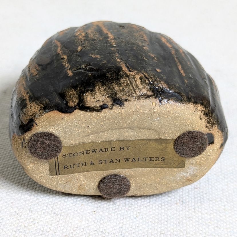 Cool & cute MCM stoneware owl, with a textured glaze to look like feathers. Original sticker on bottom says " Stoneware by Ruth and Stan Walters". No chips or cracks.