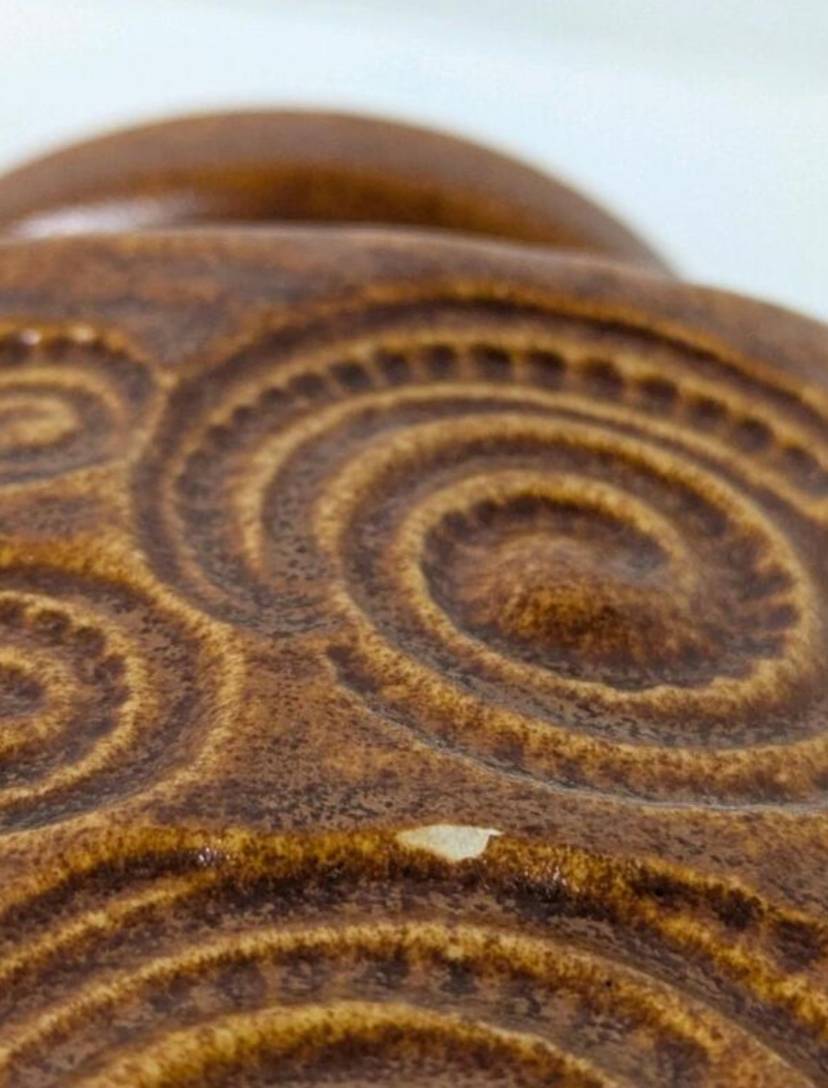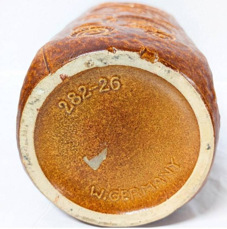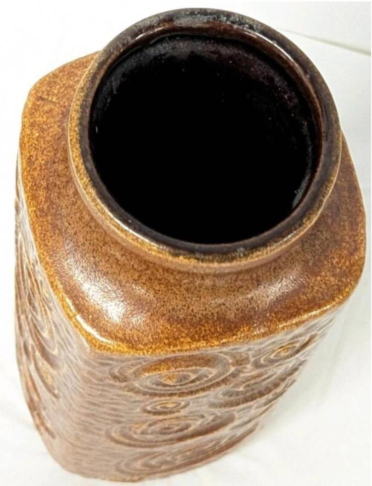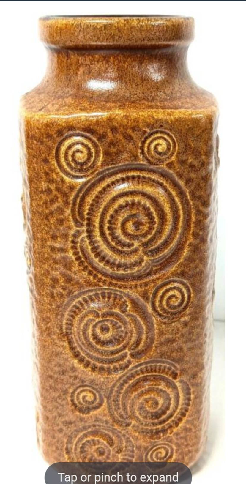 Striking MCM Vintage West Germany SCHEURICH Mustard Coloured Fossil Pattern Vase, #282-26, 10.5" Tall, Chip in Side