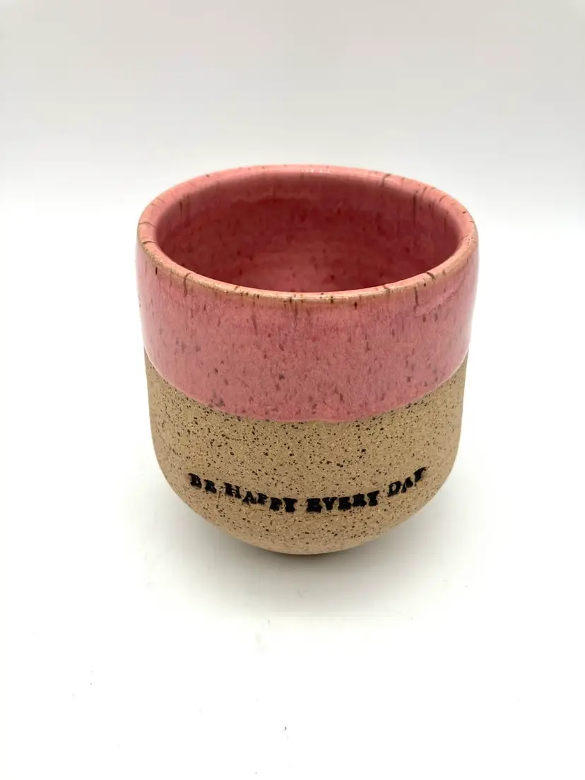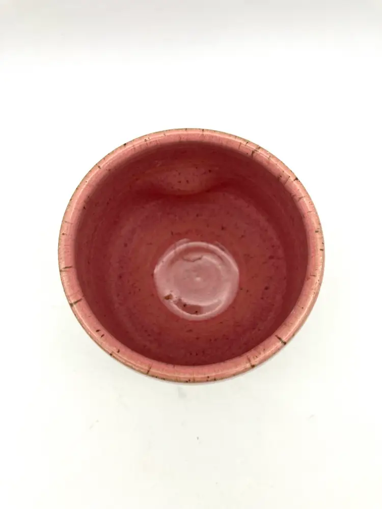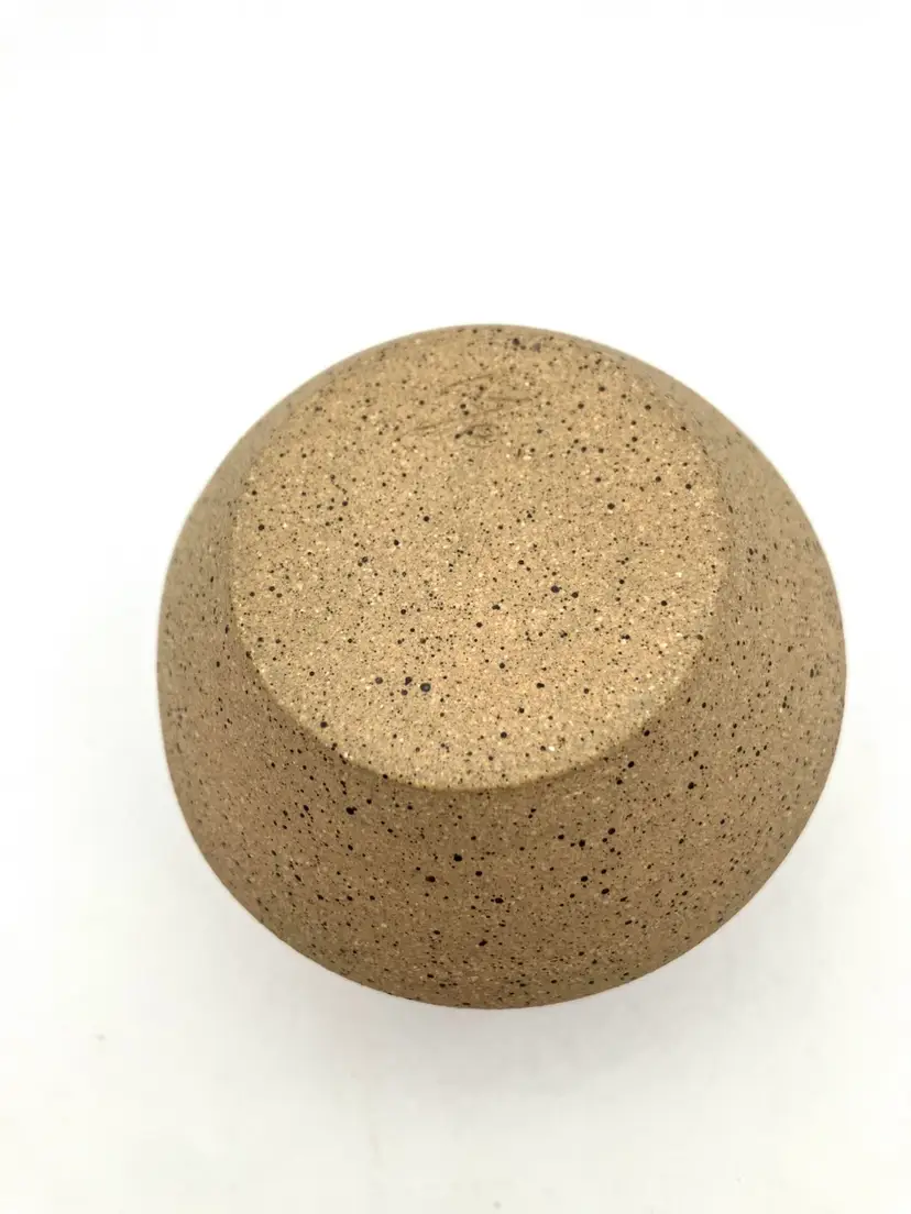 Measures 3.625” x 3.5”. Excellent condition. Thumb indent for easy holding since there is no handle. Signed “Mo” on base.holds 12 oz. To rim and 10-11 oz comfortably.