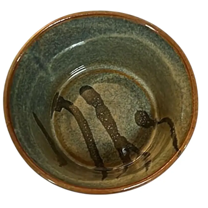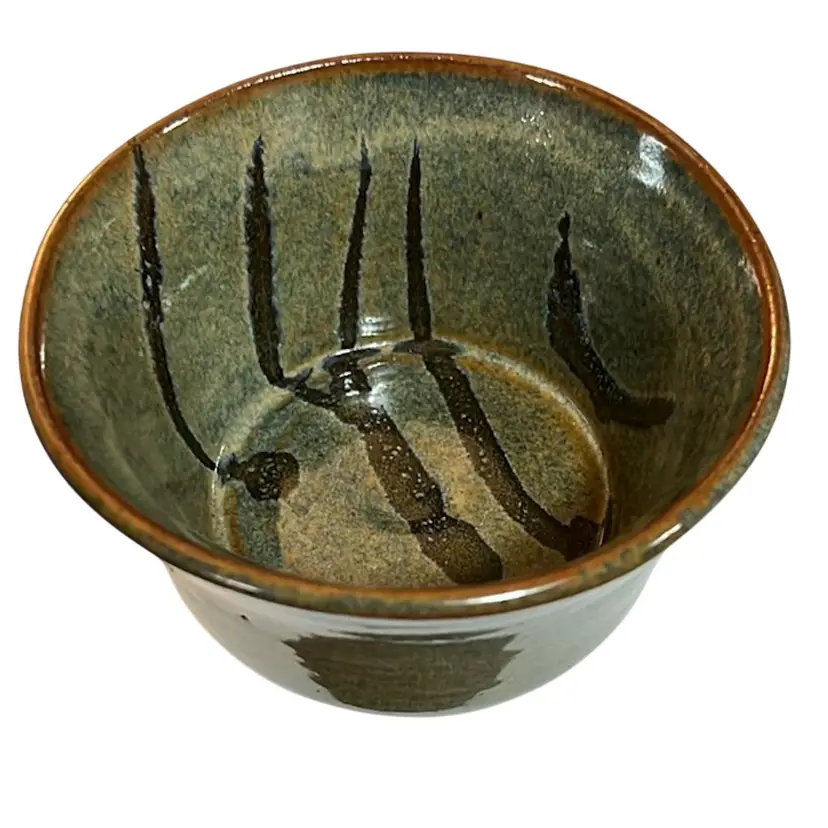 Studio Pottery Green Brown Glazed Signed Bowl 4.75” x 3”