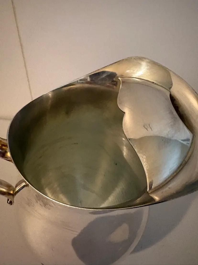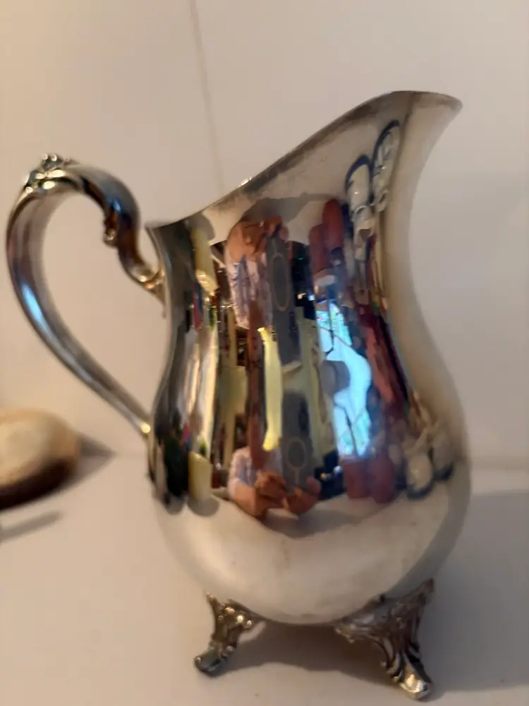 Crafted with a classic touch, this vintage Oneida silver-plated beverage pitcher is an elegant addition to any table setting. Standing at 8.5 inches with four sturdy feet, it boasts a unique Victorian style that transcends time. The piece, manufactured in the USA, reflects a period of outstanding craftsmanship and design, making it a prized item for collectors and enthusiasts alike.