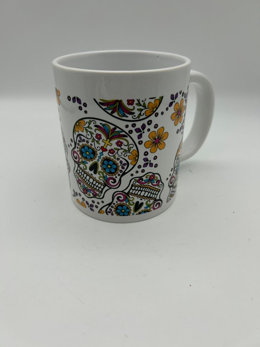 Love the intricate floral patterns, hearts and the cross on his forehead. It measures approximately 4 1/2” tall and 4” in diameter .