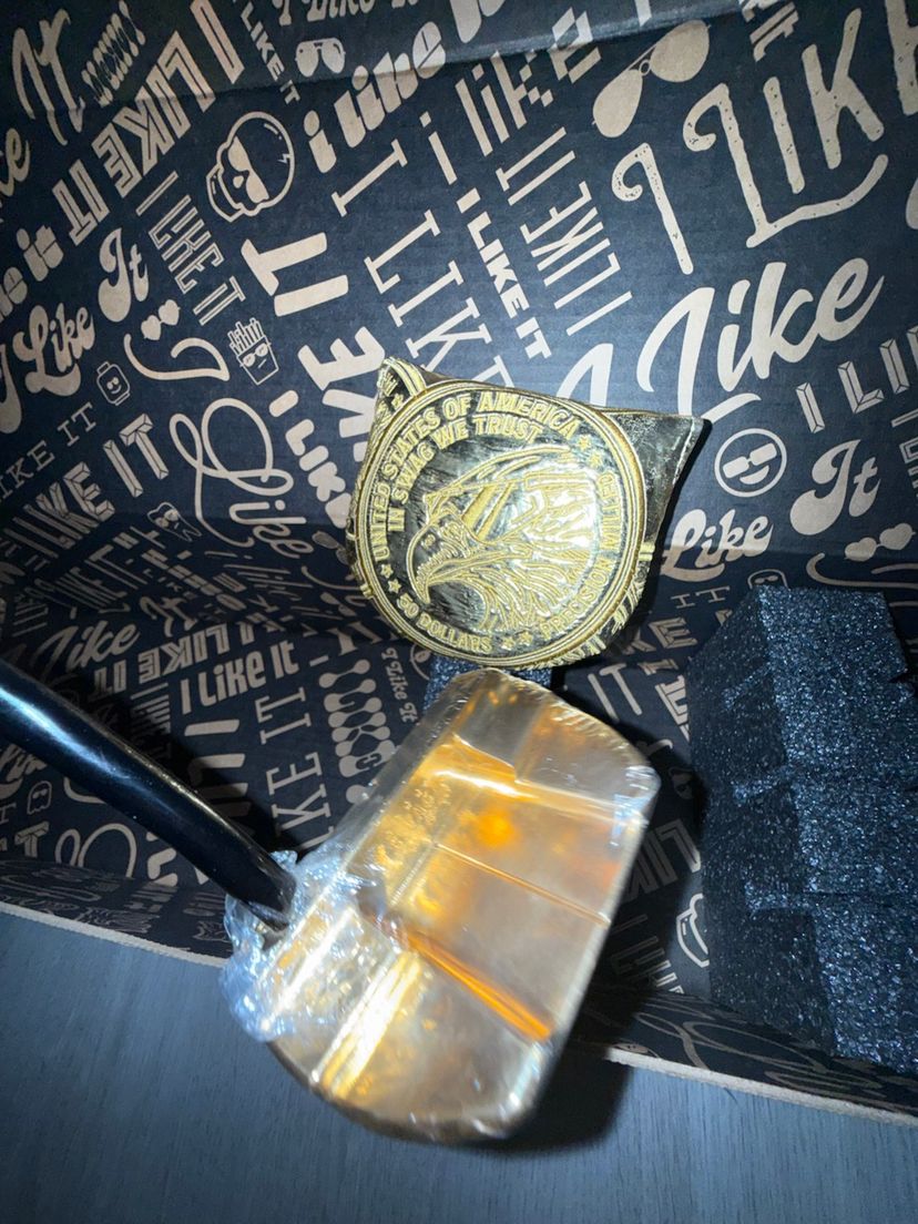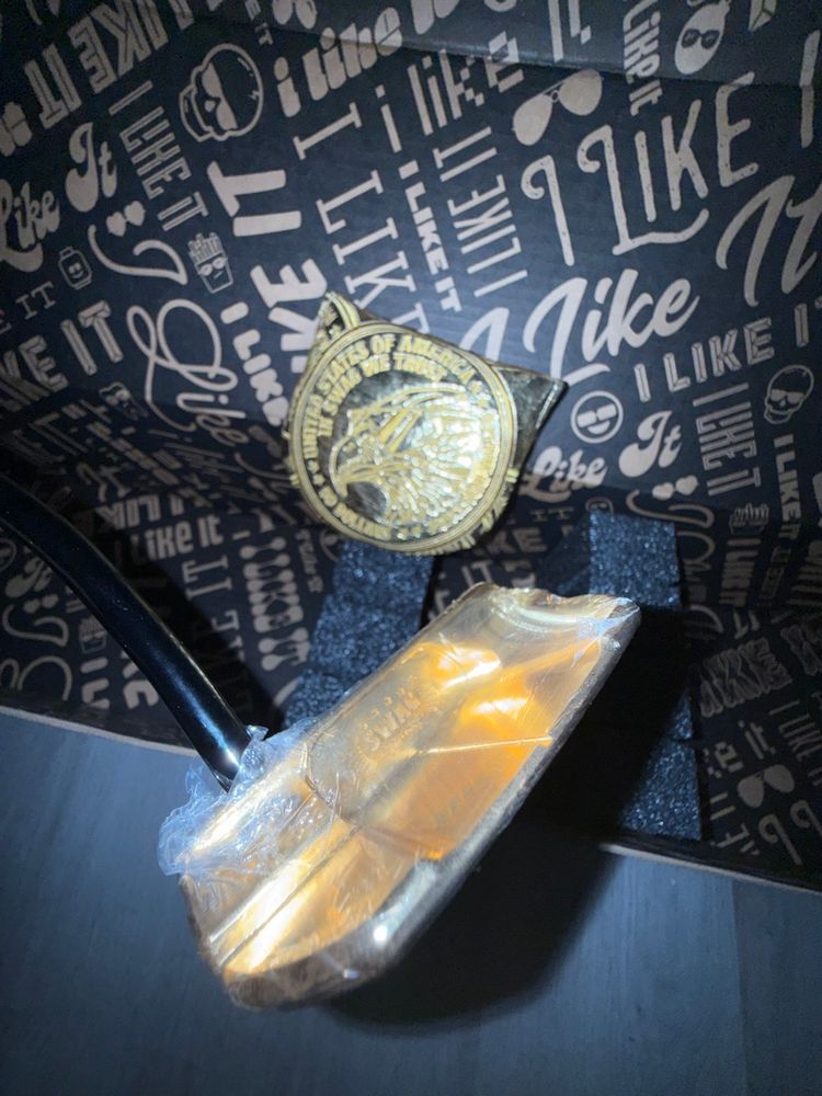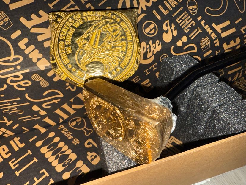 Sold out swag golf, gold putter commemorating the $50 us coin.