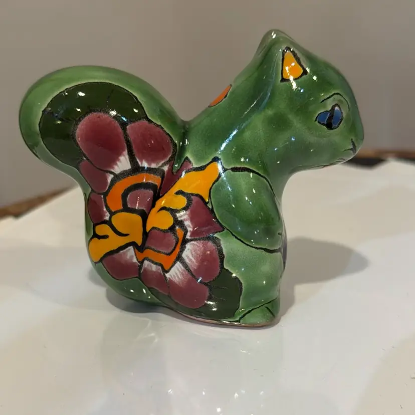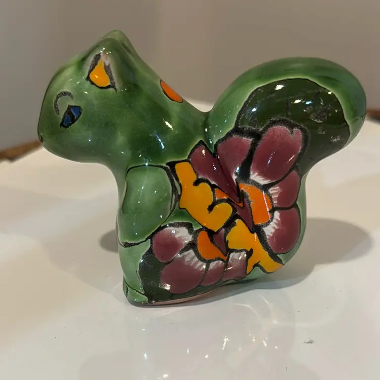 Beautiful colors on this Talavera squirrel! Measures 3 inches tall. No chips or cracks.