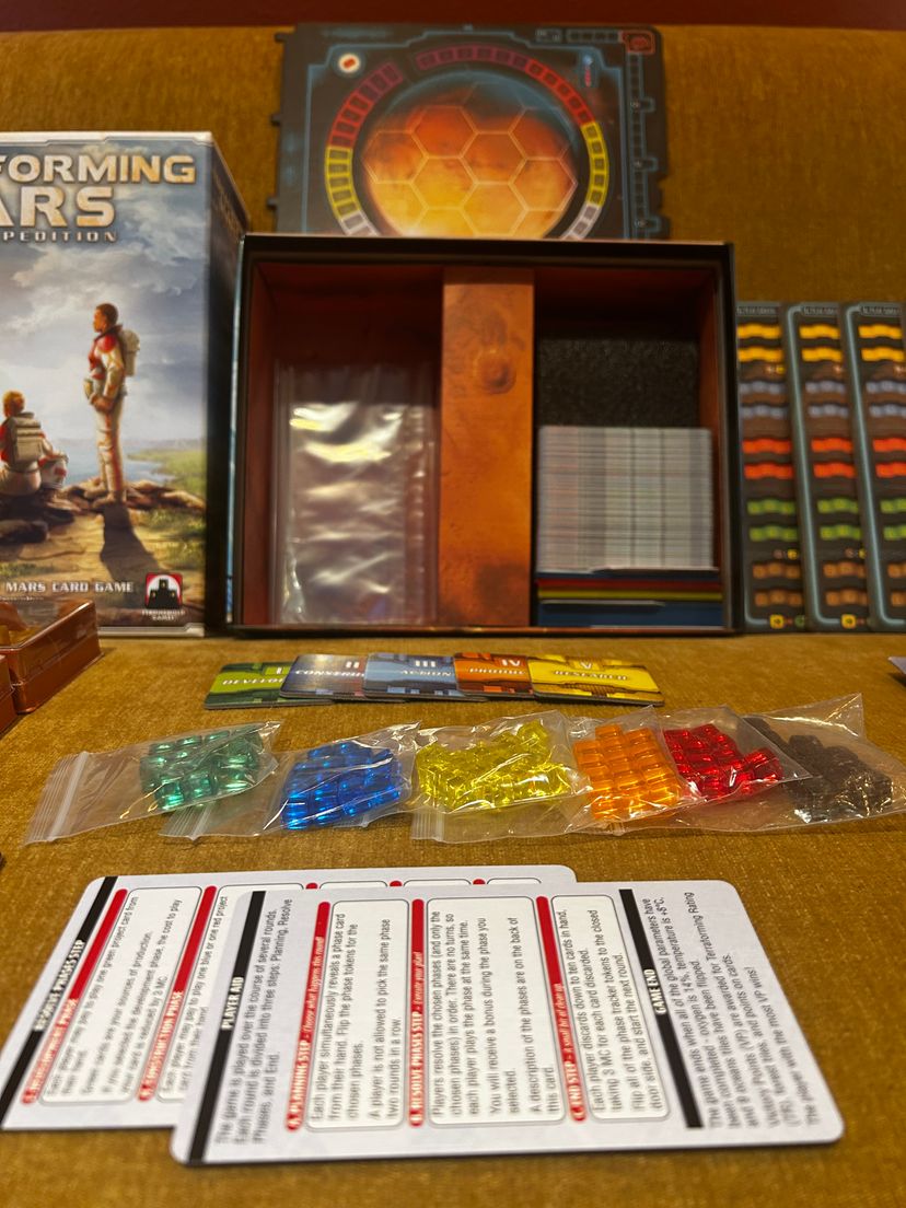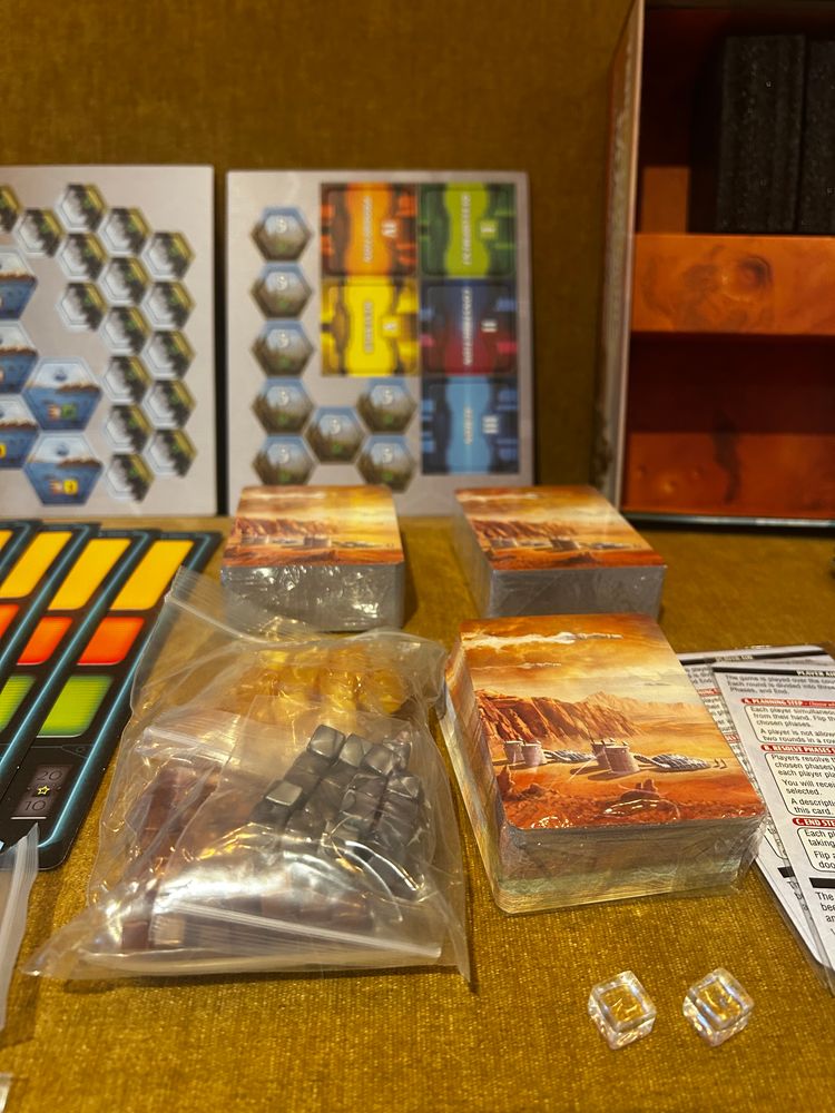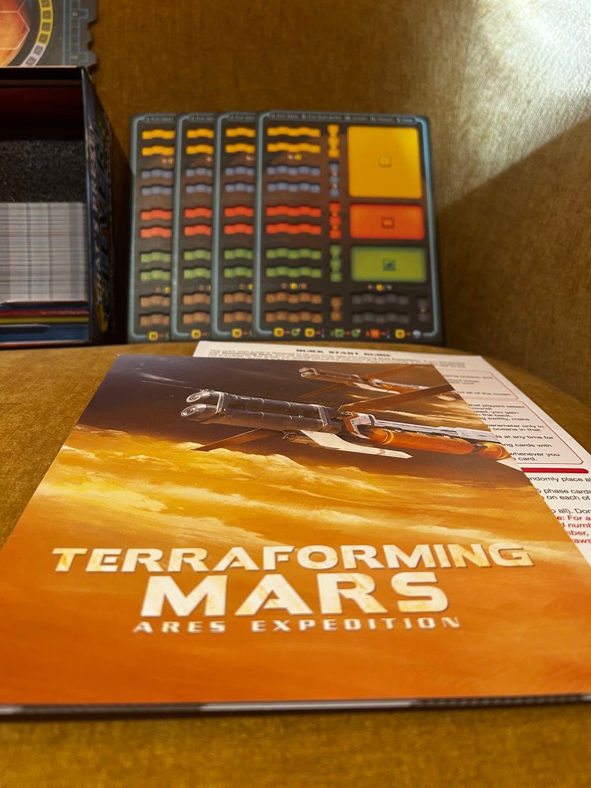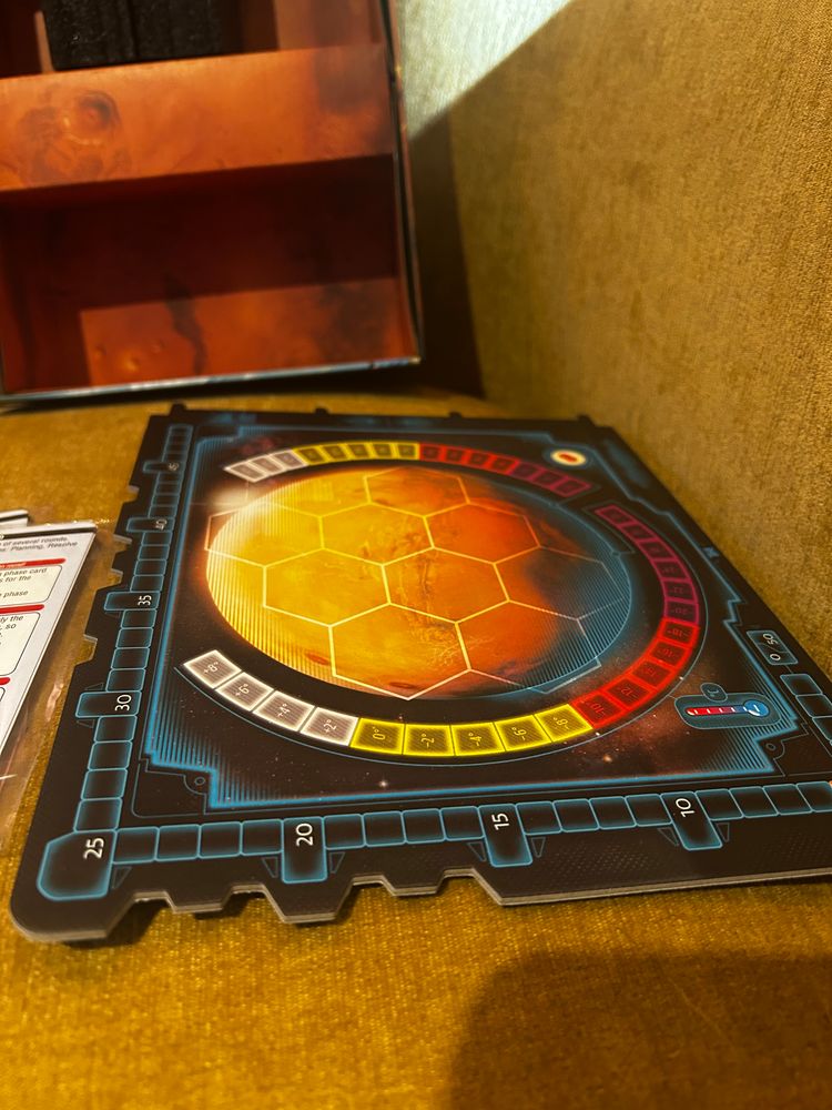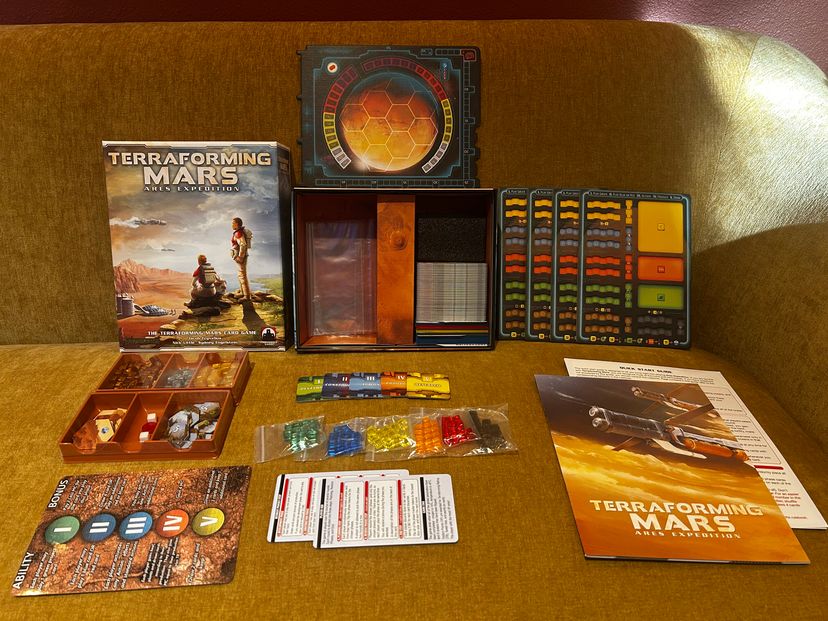 Terraforming Mars : Ares Expedition : Kickstarter Edition Unpunched/unplayed. This version of the game has recessed playing boards. Includes custom-made, laminated round tracker sheet.