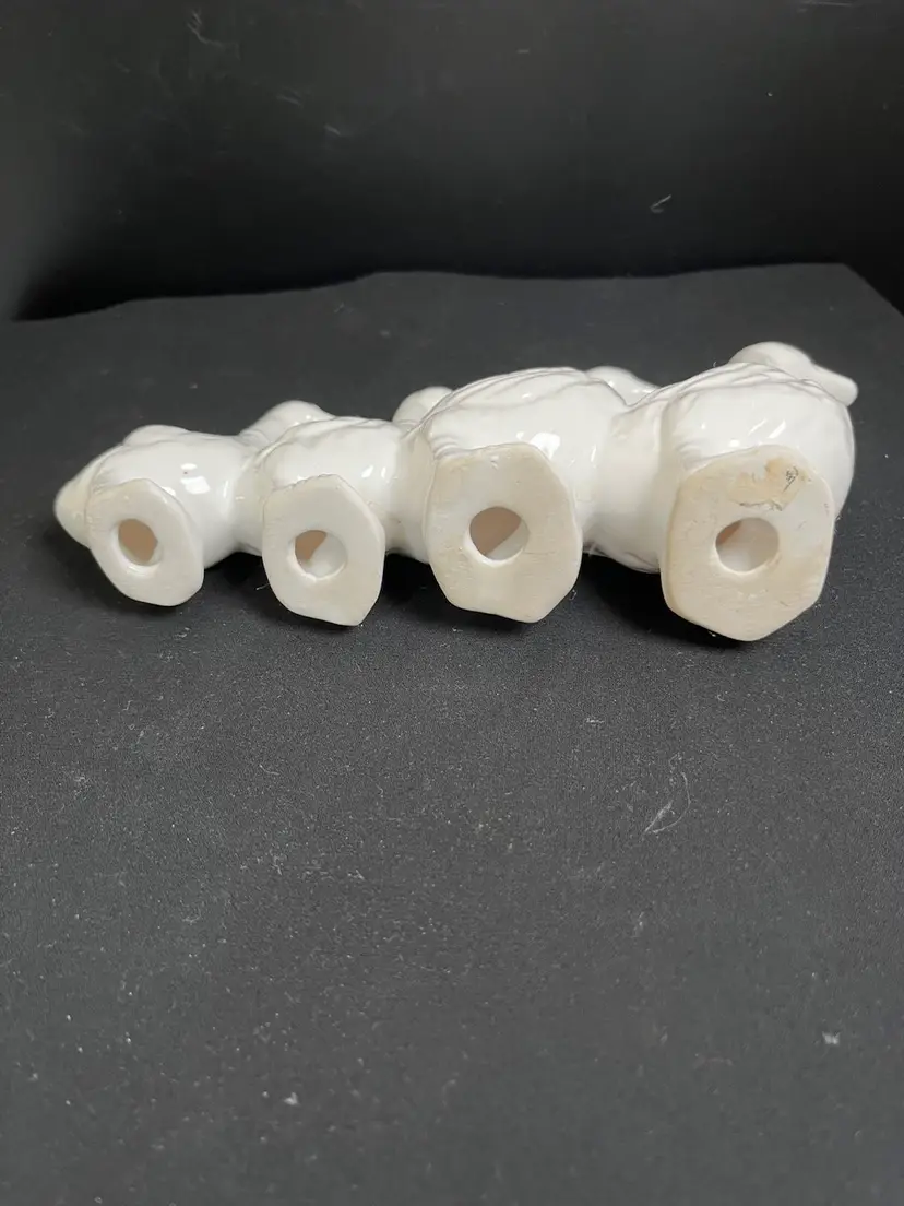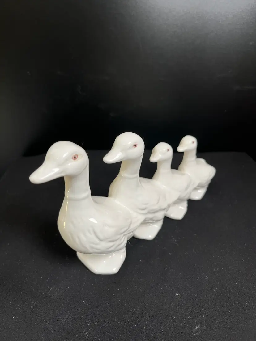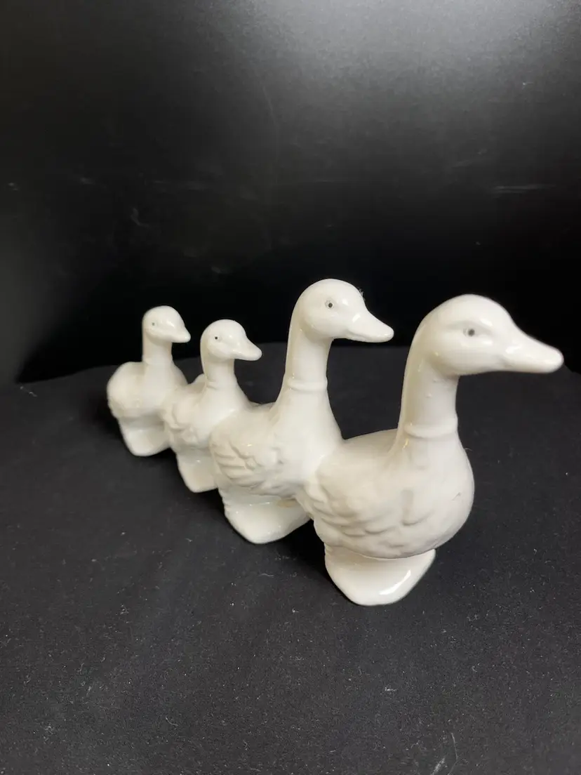 This is the cutest goose figurine, fantastic vignette filler. Has flea bite on last ducks tail and is in otherwise good condition. Measures approx 4.25"H, 7.5" L, 6.0 Oz.