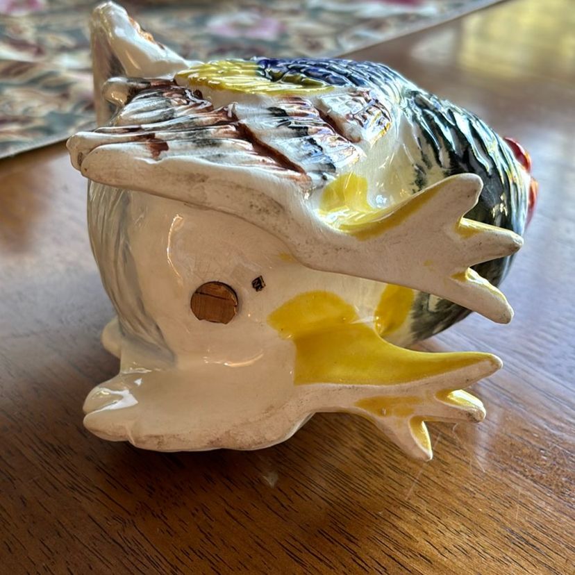 Large Turkey stove shaker. Has original stopper no makers mark. Large ceramic measuring 6” tall by 4” wide, 5” long. No condition issues