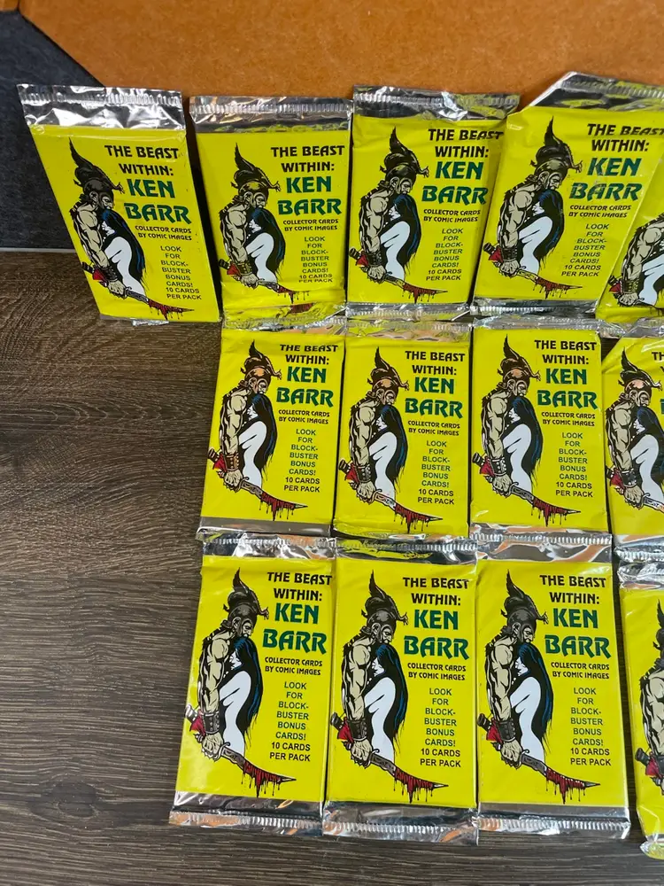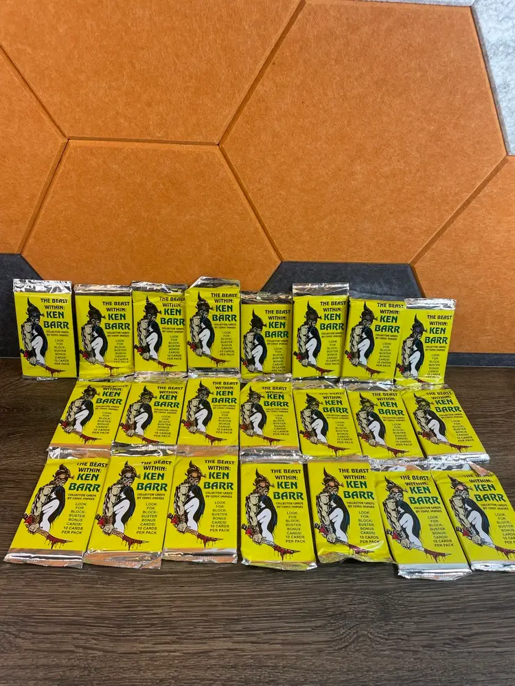 The Beast Within: Ken Barr collector cards. Lot of 22 new/ sealed packs. Some packs have some of the print rubbed off. See photos!