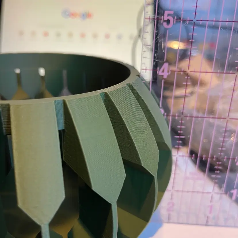 The holder is 3D printed using PLA plastic filament. 3D printing is done by printing layer upon layer of filament to build up and create the print.