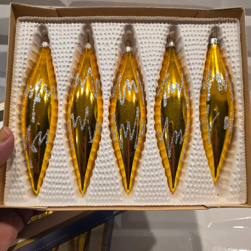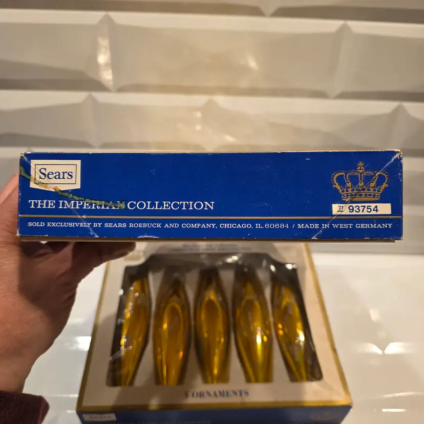 2- boxes The Imperial Collection Gold Teardrop Glass Ornaments by Sears each Box has 5 made in W. Germany