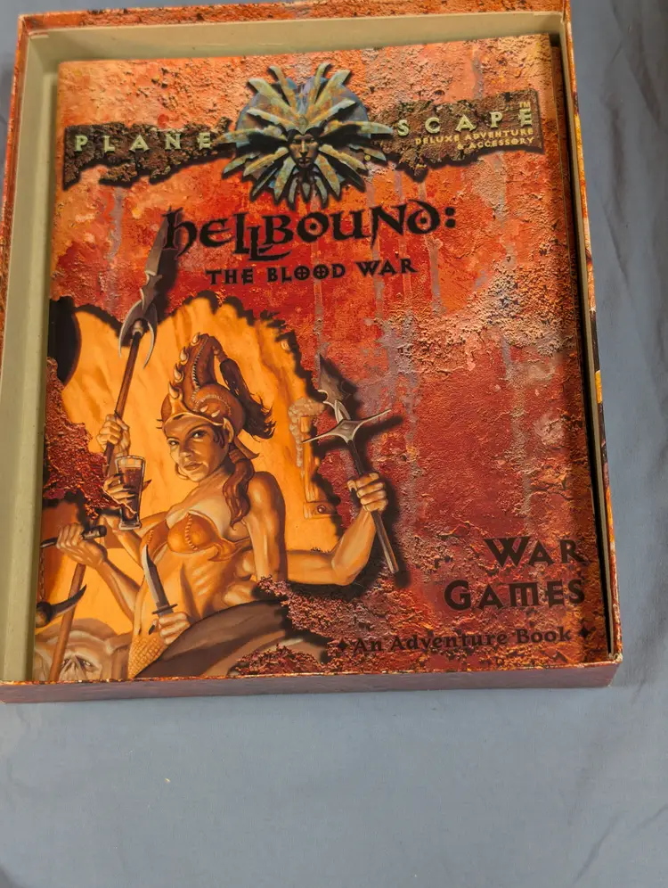 🔥 Advanced Dungeons & Dragons: Planescape - Hellbound: The Blood War (Box Set) An iconic and highly collectible box set from the legendary Planescape campaign setting for AD&D 2nd Edition. Hellbound: The Blood War plunges players directly into the cosmic, eternal war between the Devils (Baatezu) and the Demons (Tanar'ri). This set is celebrated for its stunning, dark art and intricate lore.