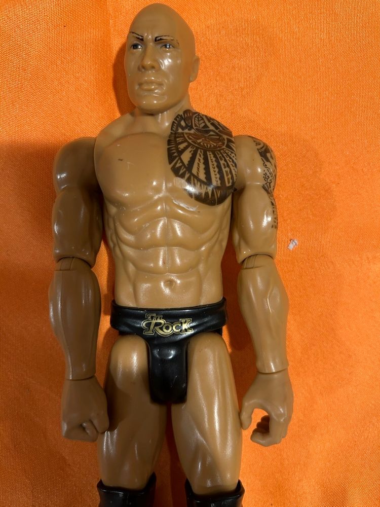 Step into the ring with the Mattel Basic Wrestling Action Figure of The Rock, a WWE classic that brings the iconic wrestling superstar to life. Manufactured in 2011, this action figure captures the charisma and athleticism of The People's Champion, featuring authentic attire from his memorable WWE appearances.