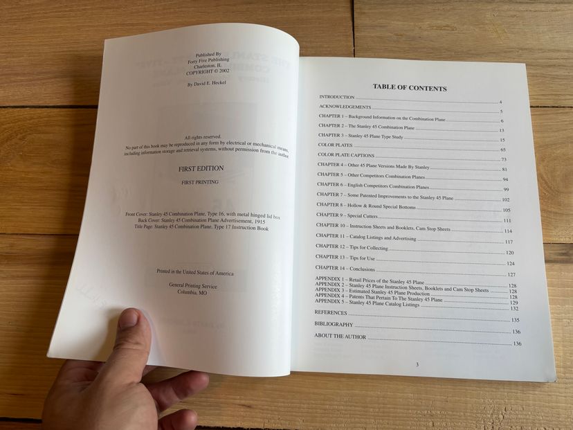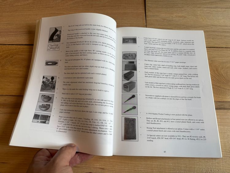 If you have a Stanley 45 combo plane, or are looking for one, this book is must have information, detailing history of production (including variants and changes), ways to identify different variants, and value.