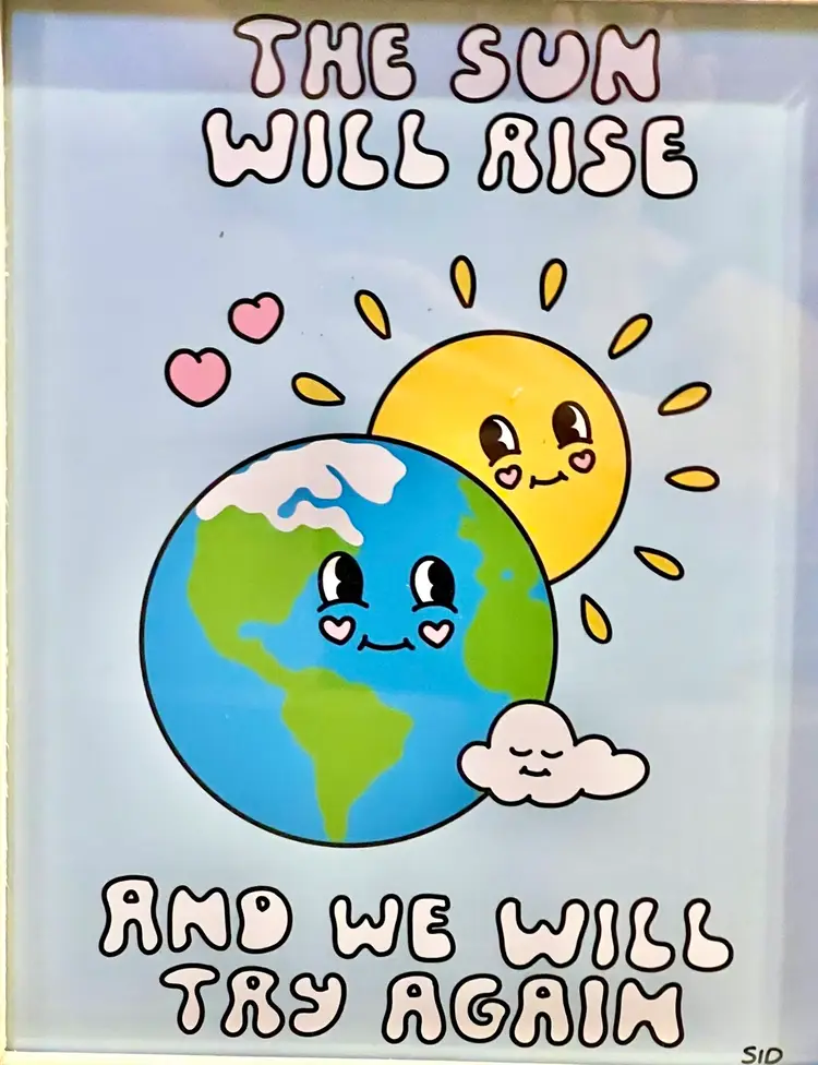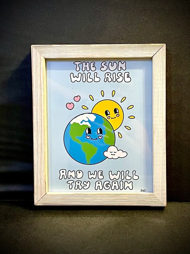 🌞This sweet affirmation is a print by retro artist Sid the Visual Kid. Love the positive vibes! The print and frame are both in great condition, and the print is behind glass. Dimensions 11.5” x 9.5”