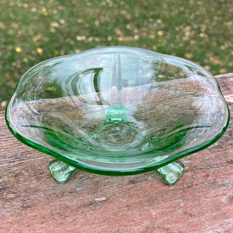 Approx: 4.5”w x 1 5/8”h. Pre-owned condition. No chips or cracks. Strong glow under 365 light. See images as part of description.