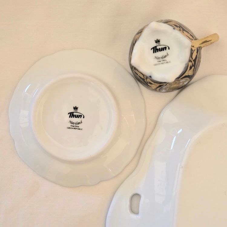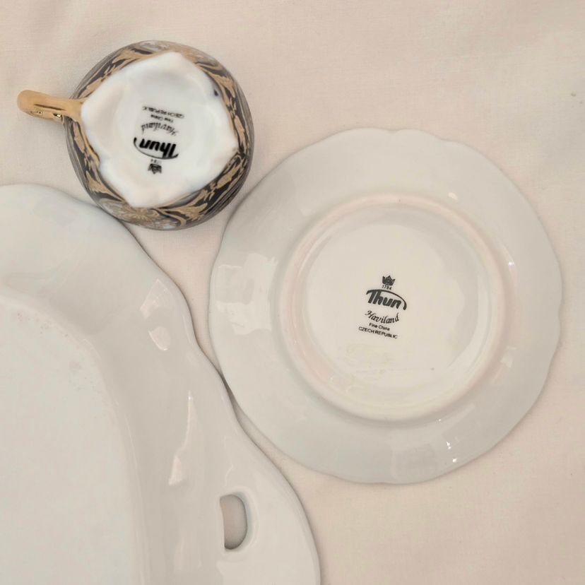 Thun Haviland Tea Set Miniature 10 Piece Porcelain Fine China 1794 Czech Made with transfer design. Used condition with no signs of use. Please view all the photos and please ask any questions prior to purchase when possible.