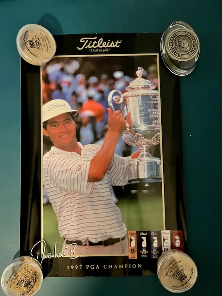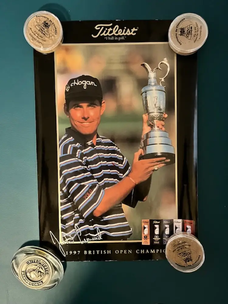 Here is a vintage set of posters for your man cave. The Tiger Woods poster has some damage around the edges it is 35"X23". The Titleist PGA, US Open and British Open Champion posters are all 12"X18" and all of them have some ware on the edges. Please message if you have any questions. Thanks for looking!